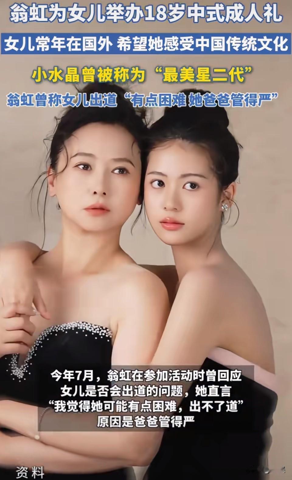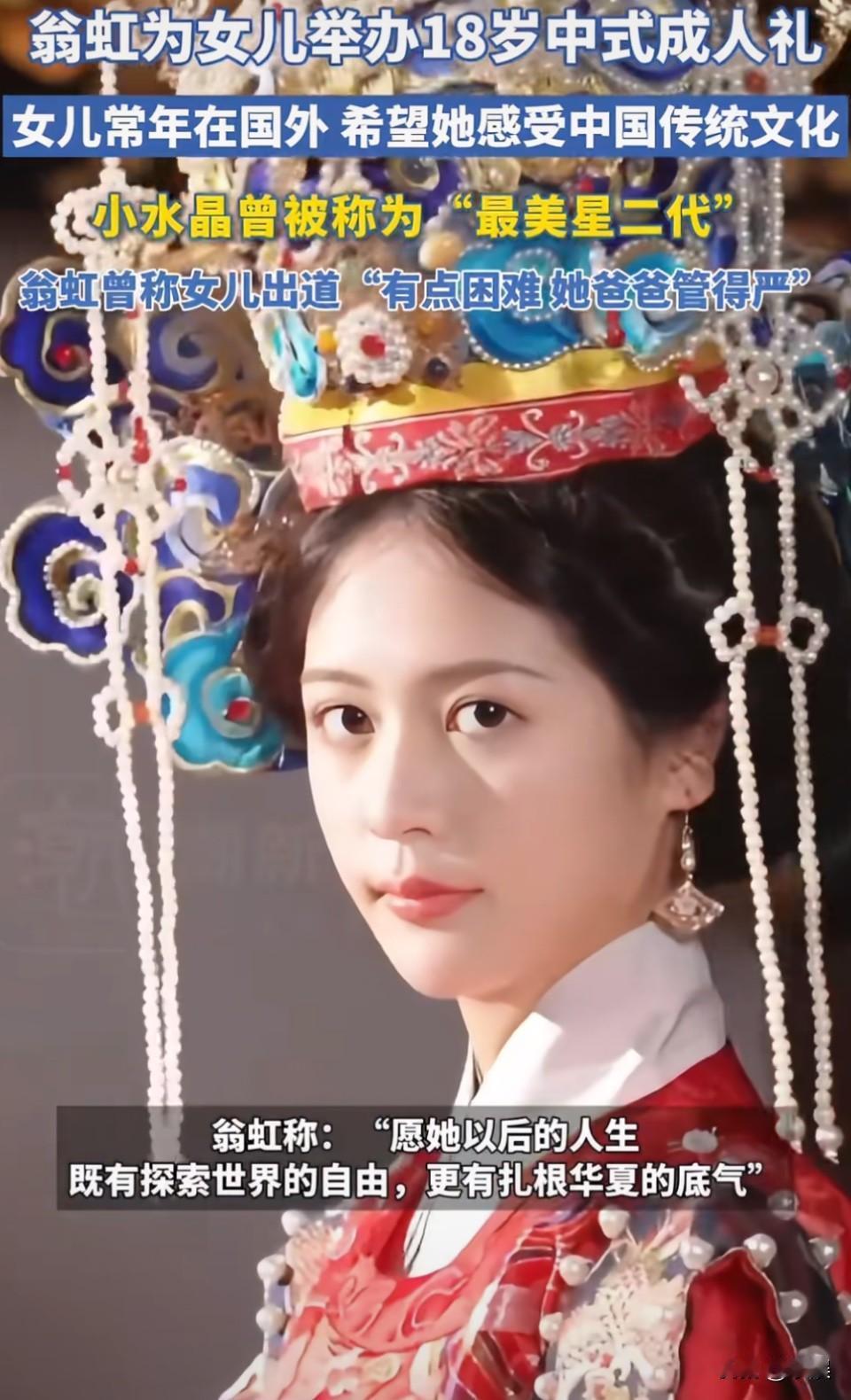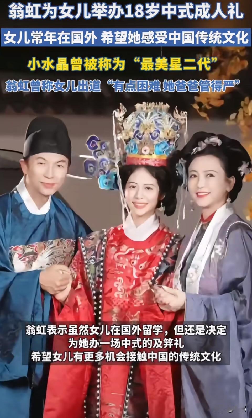 翁虹给女儿举办中式成人礼。差一点以为她是要嫁女儿呢?![笑哭] 女儿很漂亮,但妈妈在年轻的时候是自带韵味的美,那时候的美女,美的都很有特色,不雷同,现在还是很美。[吃瓜群众] 她女儿长期生活在国外 长得很中式 根本不像那些ABC。[吃瓜群众]翁虹女儿 成人礼