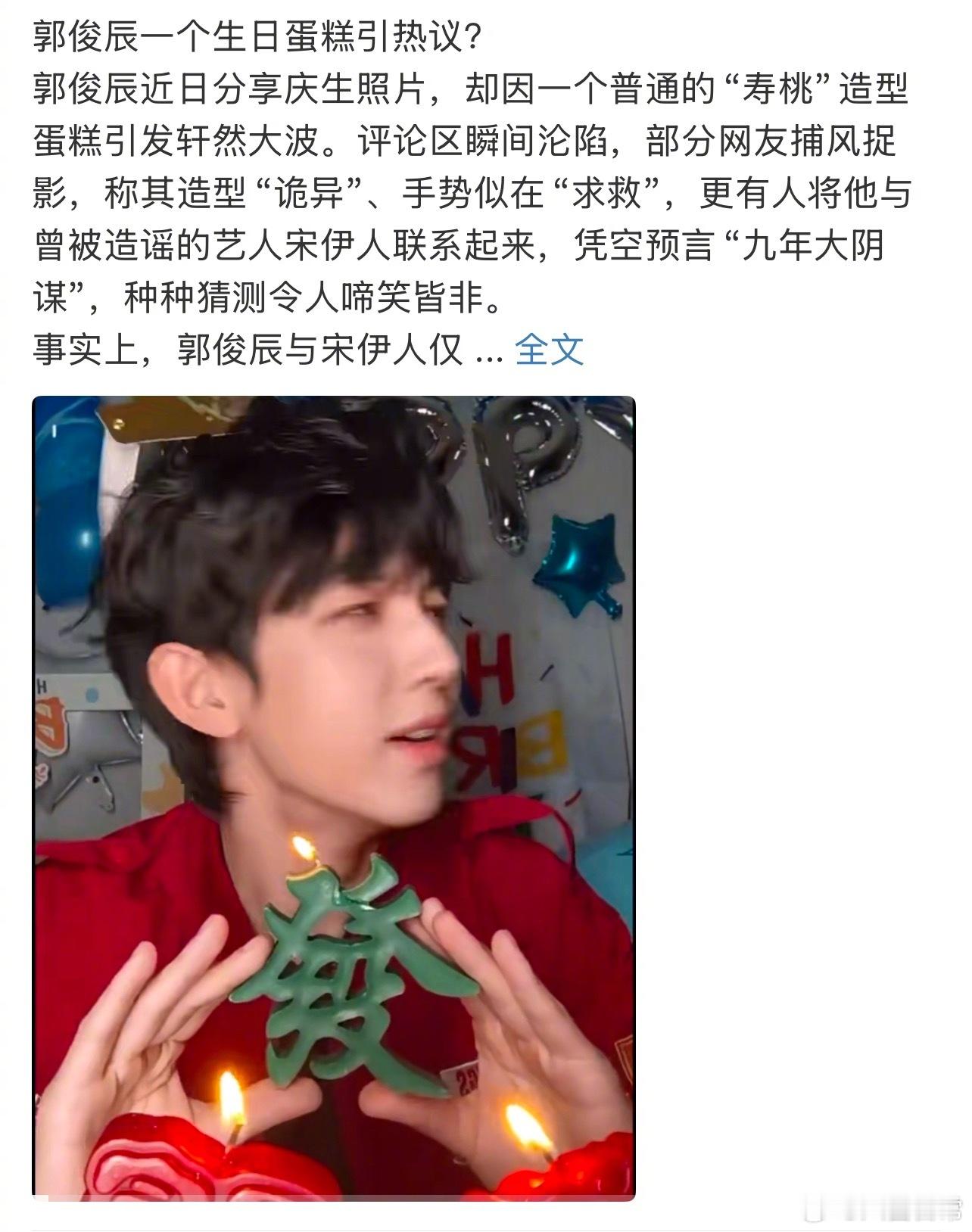 郭俊辰工作室发声明辟谣,因为前几天郭俊辰过生日的视频被部分人解读为在求救郭俊辰工