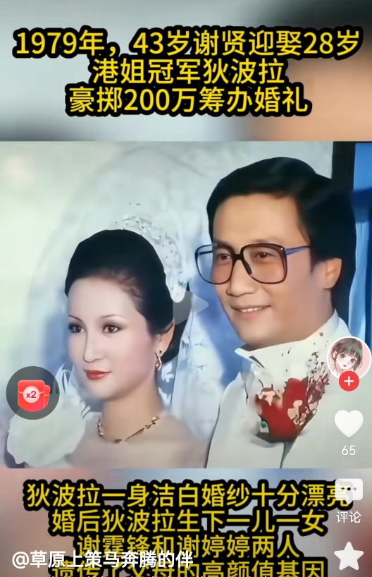 谢贤年轻时还是人很帅的,他老婆当时也非常漂亮,形二个人基因都很强大,所以后来峰哥