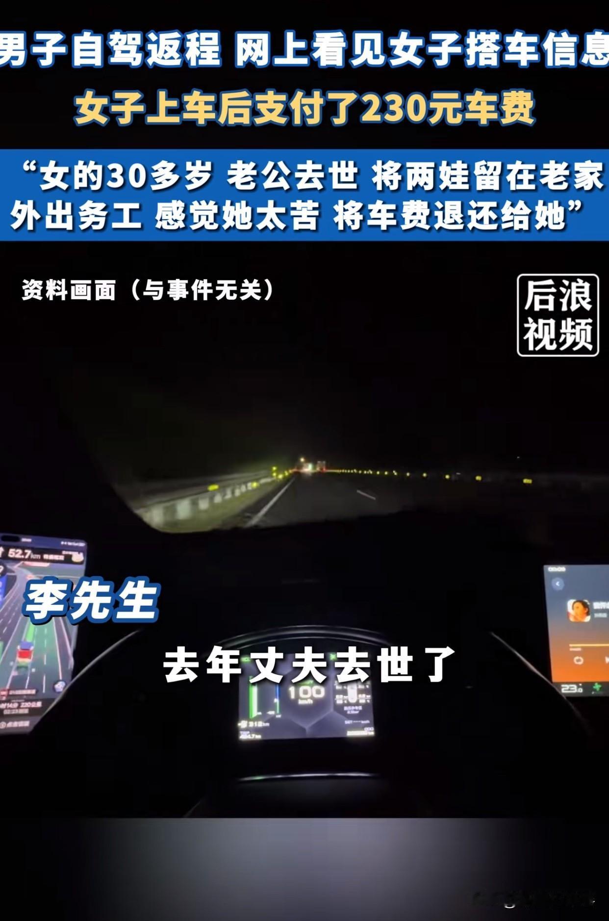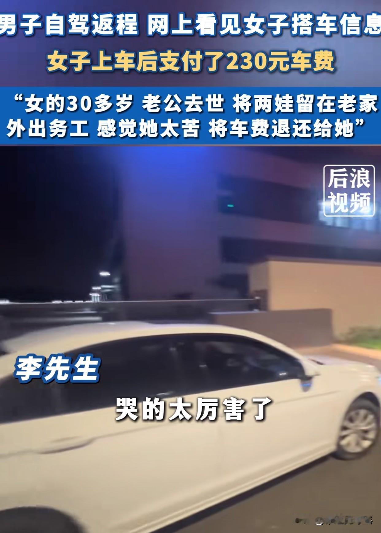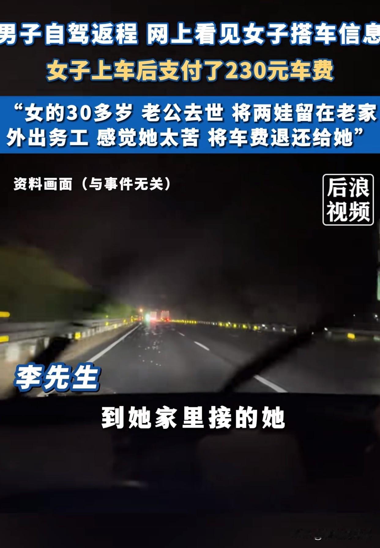 最近看到个特别暖心的新闻,让我挺有感触的。 河南一男子在回程时,顺路捎了位女乘客。路上听到她和孩子视频,才知道她丈夫去世了,一个人外出打工养两个孩子。李超心里特别不是滋味,最后把车费全退给她了,还说了句特别实在的话:“我们挣钱比你容易。” 说真的,现在社会上虽然好多人都爱算计,但这样朴实的善良真的让人心里一暖。我觉得,真正的善良,其实就是将心比心,看到别人过得不容易,就忍不住想帮一把。 这件事让我相信,善良从来不是刻意为之,而是发自内心的本能反应。在这个世界上,每个人都不容易,但正是这些微小的善意,让我们的生活多了许多温暖。希望我们都能成为点亮别人生活的那束光。