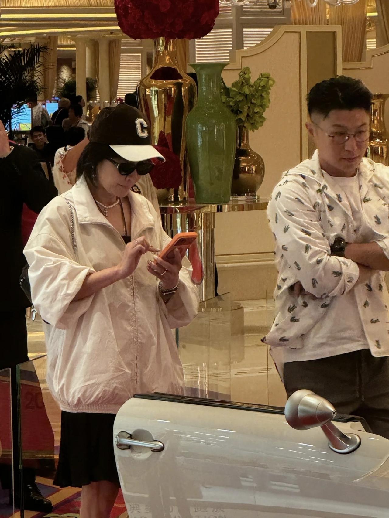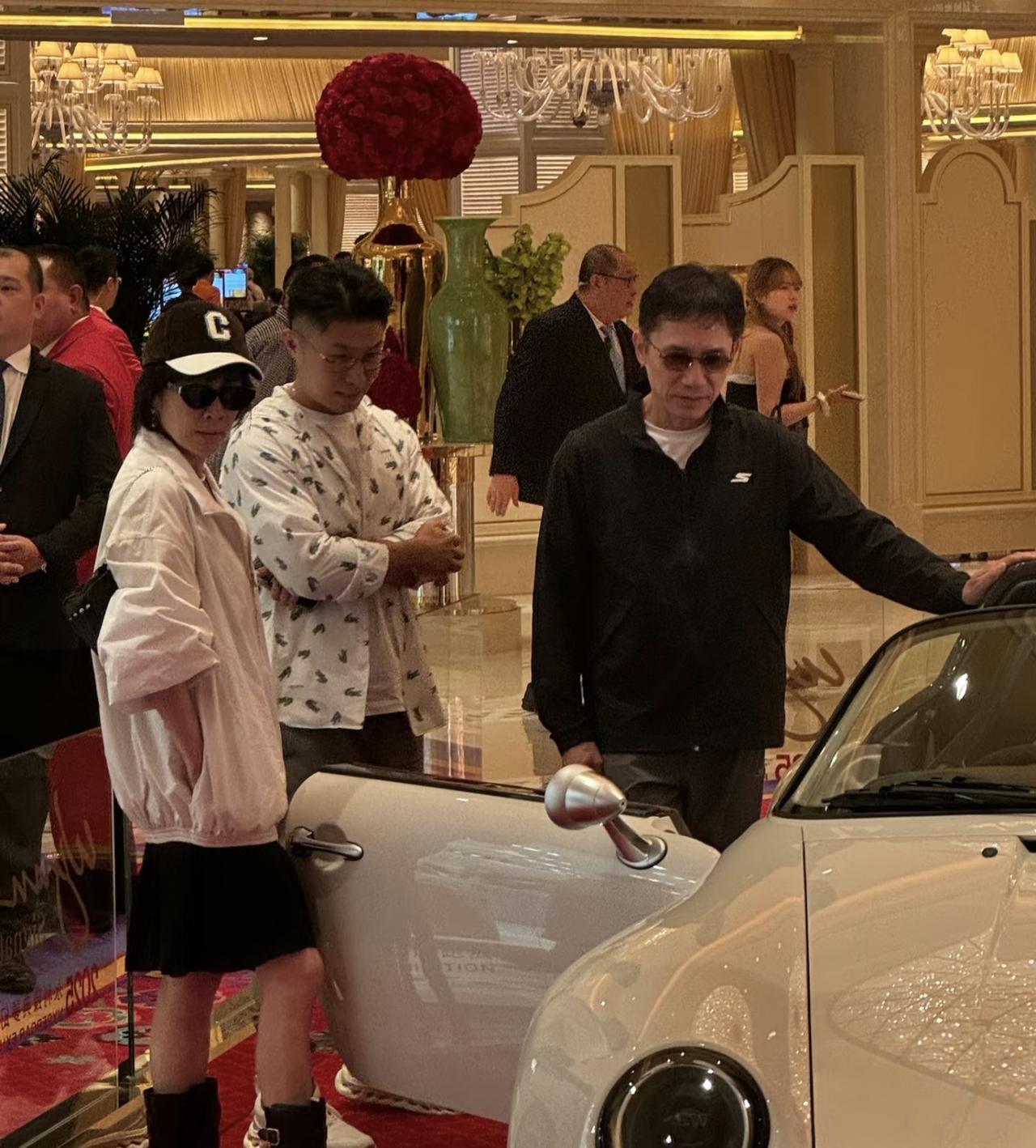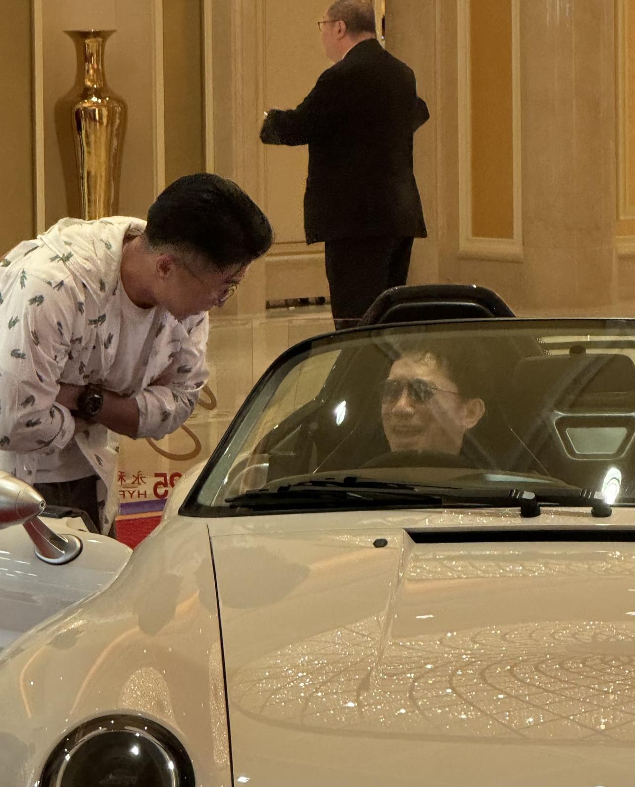 梁朝伟和老婆刘嘉玲现身澳门永利皇宫,夫妻俩在大堂看车,见到一辆外形漂亮的复古车,梁朝伟整个人爱不释手,迫不及待坐进车里感受,整个人看起来好幸福,脸上挂满了笑容! 刘嘉玲的打扮很时尚,手上拿着的疑似是某品牌最新款的手机,她默默在旁边陪着梁朝伟,两个人非常恩爱!