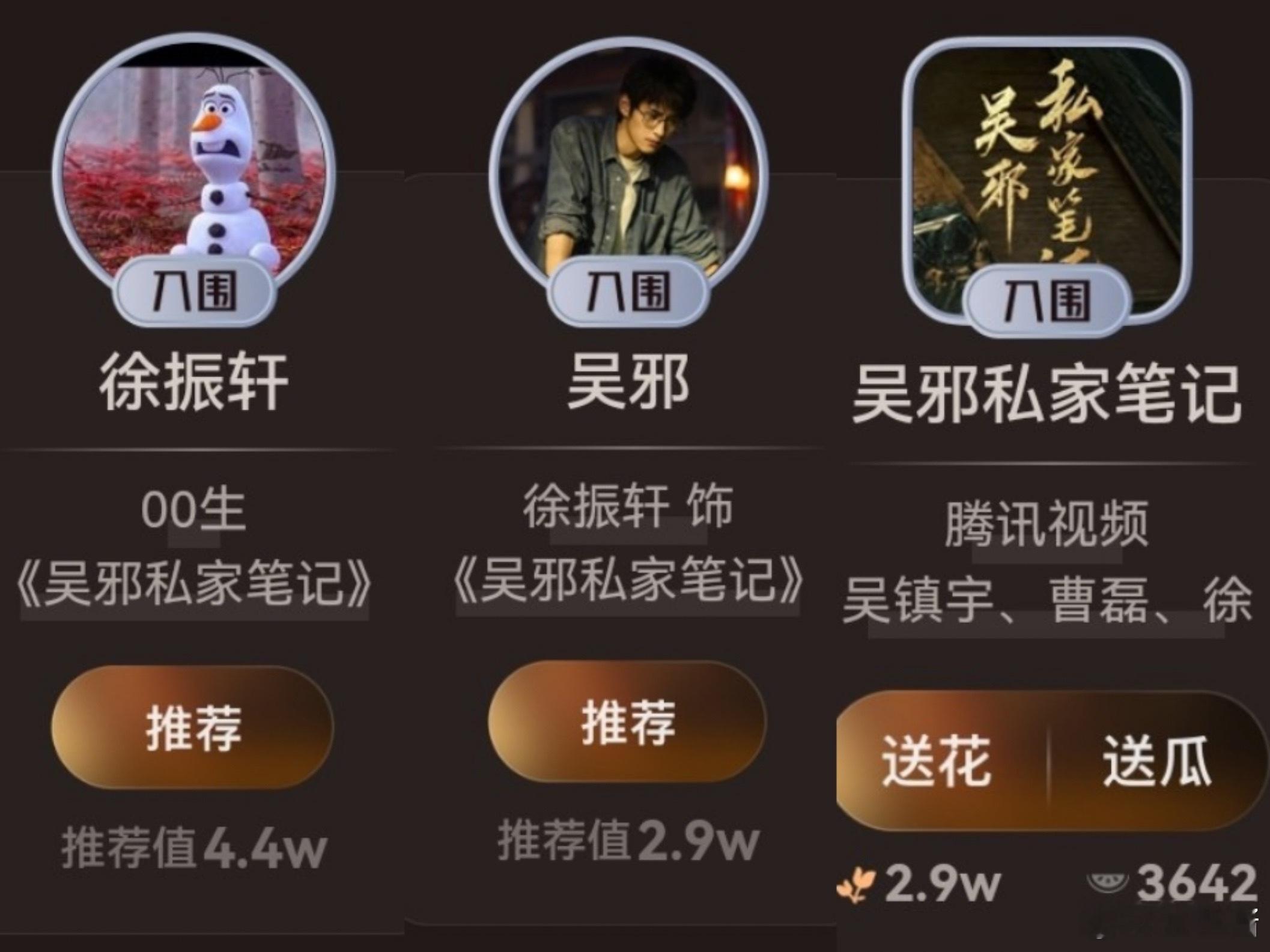恭喜徐振轩在《吴邪私家笔记》中饰演的吴邪角色入围微博视界大会啦!期待之后的精彩表