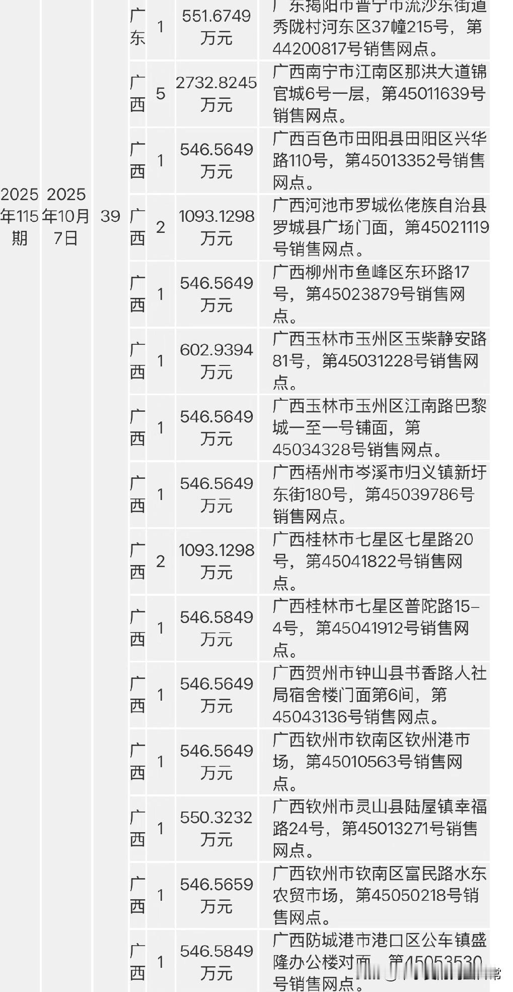 没错啊,20注广西的,多出来那一注广东的,应该是主任到那几个地方视察了。
