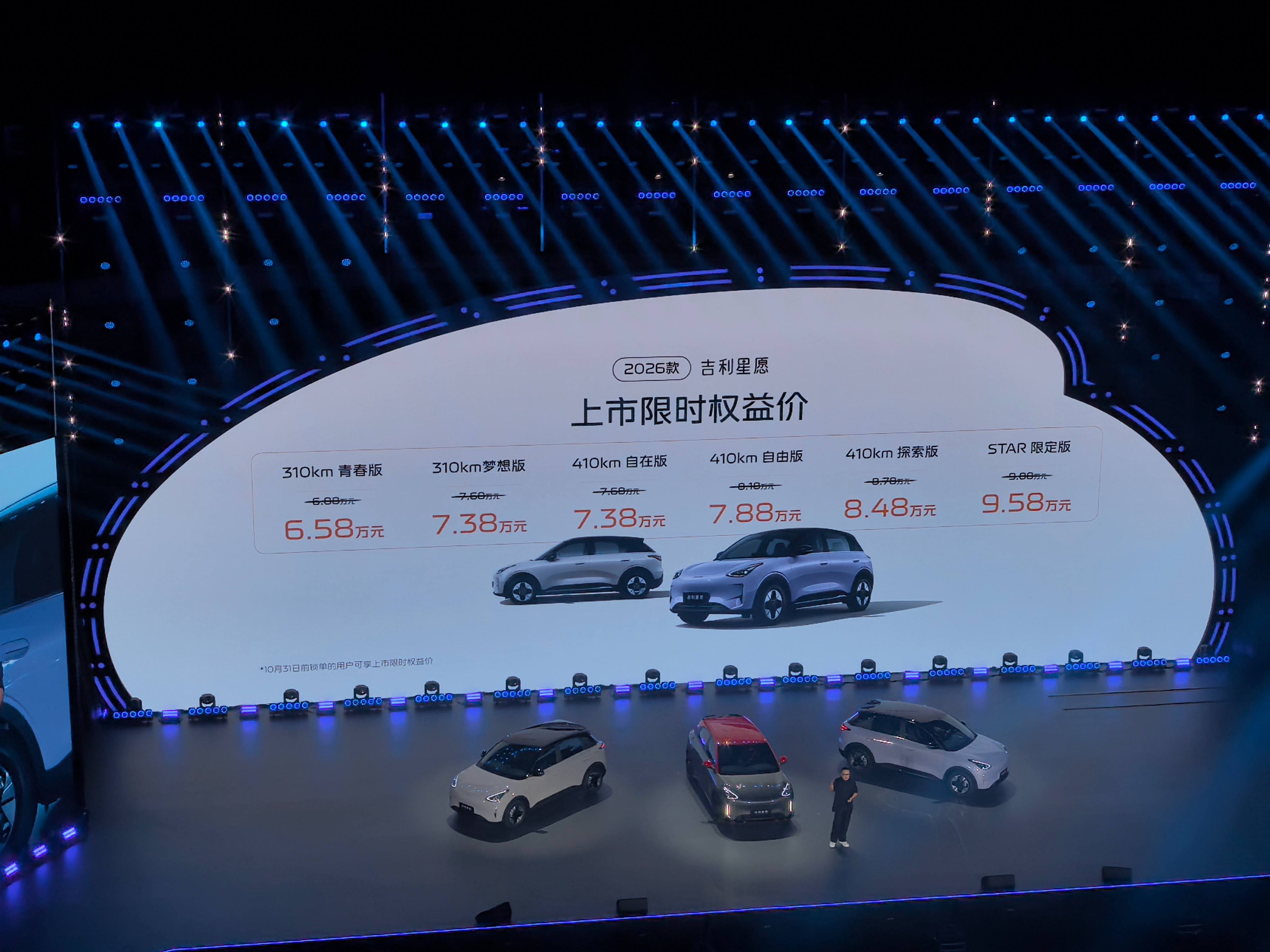卖的最好的新能源——2026款吉利星愿来了,起售价6.88万与老款没变,410探索版8.78万,还降了一万。
