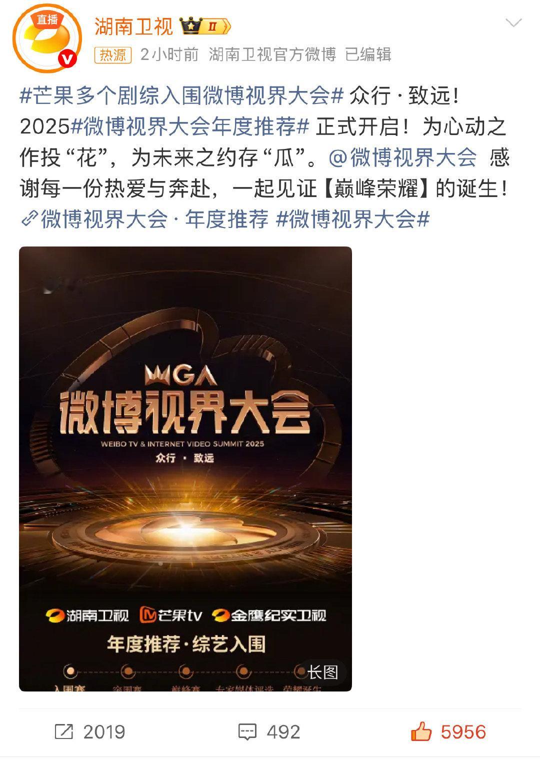 芒果多个剧综入围微博视界大会微博视界大会年度推荐微博视界大会纪录片《中国官箴2