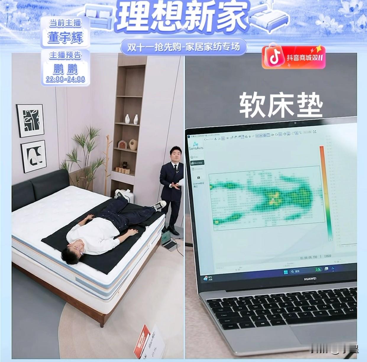 今天董宇辉给科普了一条常识 之前一直以为睡硬床垫对腰好 今天他讲完之后才知道 除非是遵医嘱的特殊人群 普通人睡软床对腰更好 他们直播间还专门找来仪器 让马骞儿躺上面演示给大家看 在硬床垫上,背和臀是受力点,腰部悬空 在软床垫上,受力面积就会更均匀一些 腰部也能支撑,反而会更轻松 怪不得每次睡硬床起来腰酸背痛 原来是选错床垫了[笑哭] 这就是大家爱看董宇辉直播的原因 他不是简单直接的告诉你答案 而是用事实说话[赞]
