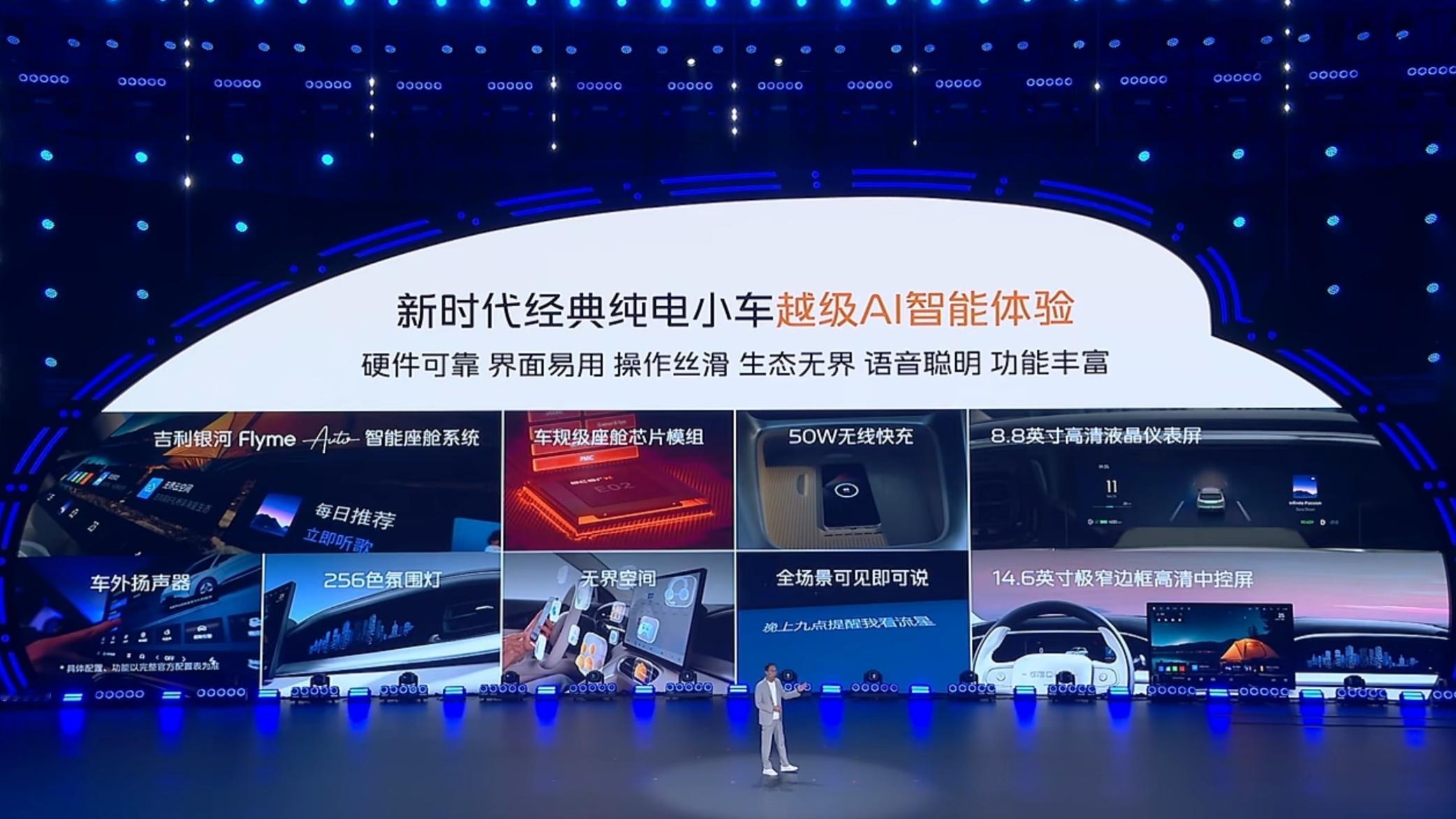 支持壁纸桌面切换、快捷卡片、导航栏功能自定义、定制版高德地图、540度全景影像等功能,该车还配备AI车外音响以及休憩空间、露营模式等场景模式。