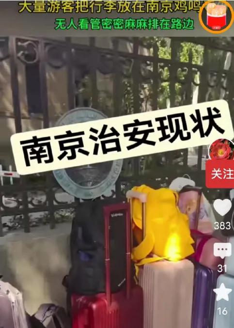 又好气又好笑,国庆期间,大量来南京游玩的游客,把行李放在鸡鸣寺路边,或者其他地方,密密麻麻排一排,自己轻轻松松去玩了。 路过的本地人看了直摇头,这要是丢了东西,哭都没地儿找。 国庆南京景点挤得慌,鸡鸣寺作为网红打卡点,游客攥着相机就想往寺里钻,行李拖在手里嫌麻烦,瞅见路边有空地,不管是树底下还是台阶边,一股脑儿堆上去。有的是大拉杆箱,有的是小背包,排得跟快递点似的,主人转身就往樱花道或者药师佛塔跑。 其实鸡鸣寺附近不是没寄存的地儿,途简单小程序查得到,周边6个寄存点,背包10块钱一天,拉杆箱20块,就在地铁三号线、四号线鸡鸣寺站出口,或者景区正门口,走两步就到。南京这两年治安是真不错,2024年全市刑事案件比前一年降了12.3%,景区里监控覆盖到每段台阶,国庆期间玄武湖派出所还加了8个流动岗,民警穿着便装在周边转悠。但再安全也架不住人心大,去年中秋有个游客在夫子庙贡院街放了个双肩包,回头就少了里面的平板,虽然调监控找着了捡包的人,可折腾了仨小时才拿回来。 为啥游客宁愿把行李放路边,也不去寄存? ① 嫌麻烦,觉得寄存要填信息、找位置,不如直接扔路边省时间; ② 对南京太信任,听朋友说“南京小偷都少”,就把“安全”当“绝对安全”; ③ 从众心理,看到别人放,自己也跟着放,觉得“大家都这样,肯定没人敢拿”。 这事儿其实戳中了“安全感”的两面——南京用 years 的治安努力,让游客敢把行李交给出门在外的信任;可游客的安全意识还停在“靠运气”阶段,总觉得“坏事不会轮到我”。就像小区里扔未开封的饮料没人拿,那是邻居熟脸讲规矩;但景区里人来人往,有游客、有商贩、有路过的行人,万一碰上个“顺手”的,哭都没地儿说理。鸡鸣寺的义工阿姨说,假期里每天能捡到五六个手机,都是游客拍樱花拍得忘乎所以,把手机搁台阶上就走了。 有个2019年去苏州寒山寺的网友说,朋友把装3万现金的包忘在奶茶店,回头找着了,说是游客交给工作人员的。我觉得这是运气好,但运气不能当“安全密码”——寒山寺的案例是“有人帮”,可万一没人看见呢? 要我说,游客想轻装玩没错,但“轻装”不是“丢包袱”啊。寄存点花十块钱,换个踏实,总比玩的时候老想着“我行李还在路边”强。南京是安全,但安全是“双向的”——城市给你兜底,你也得给自个儿上道“保险”。 你国庆旅游有没有过“心大”的操作?最后是虚惊一场还是真丢了东西?