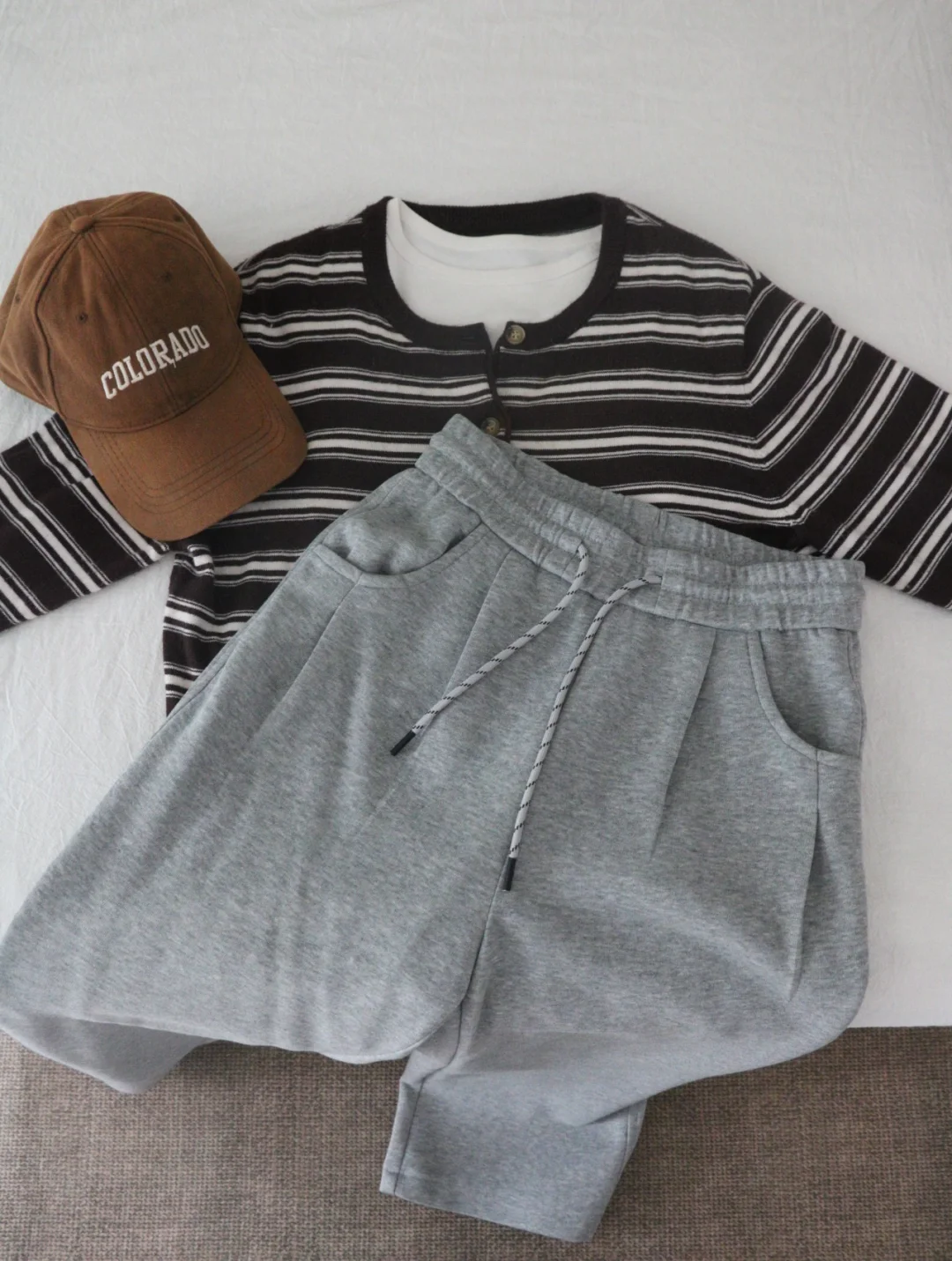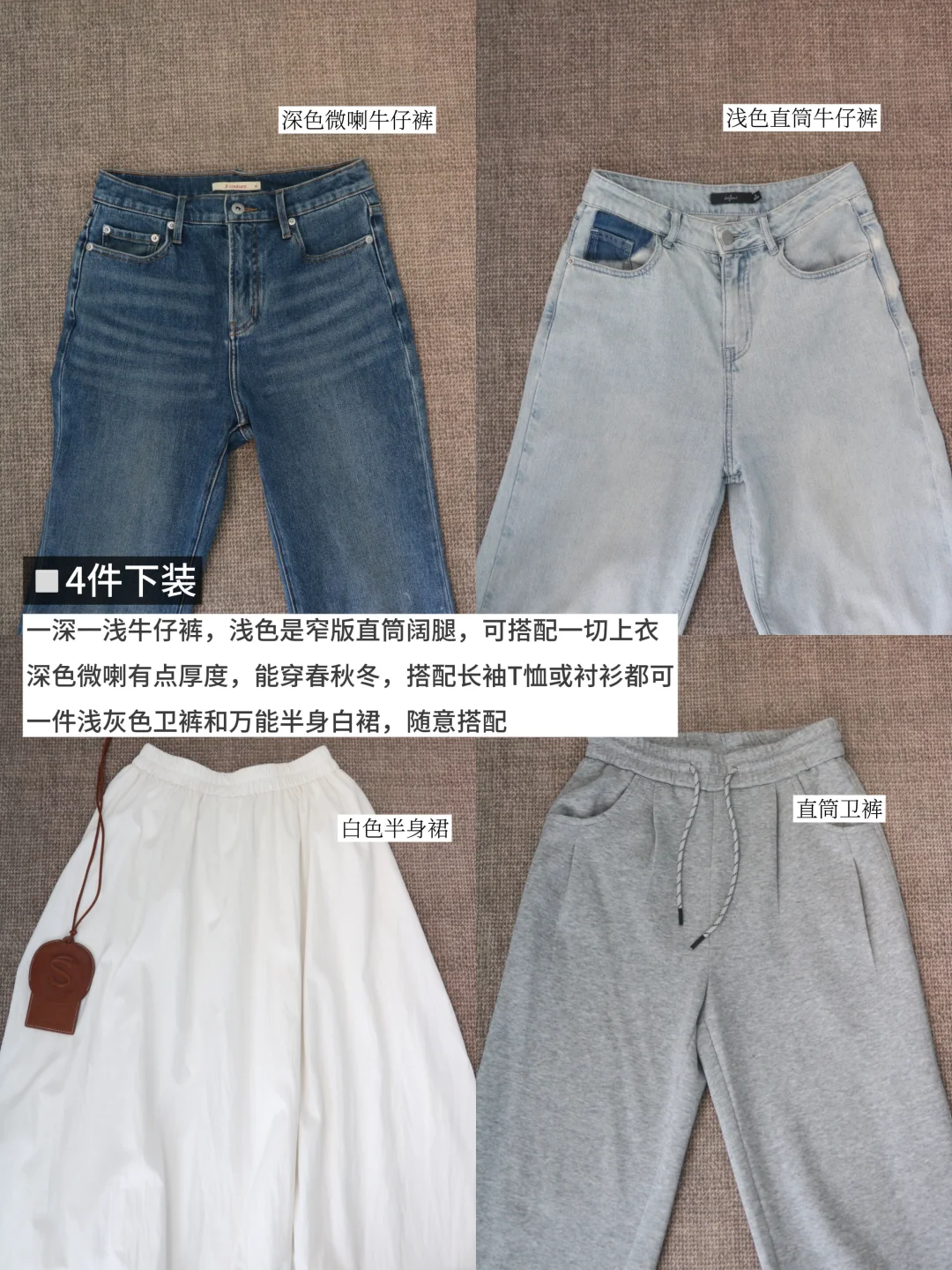 裤子:买宽松中等厚度,牛仔棉、纯棉,都可以穿四季
