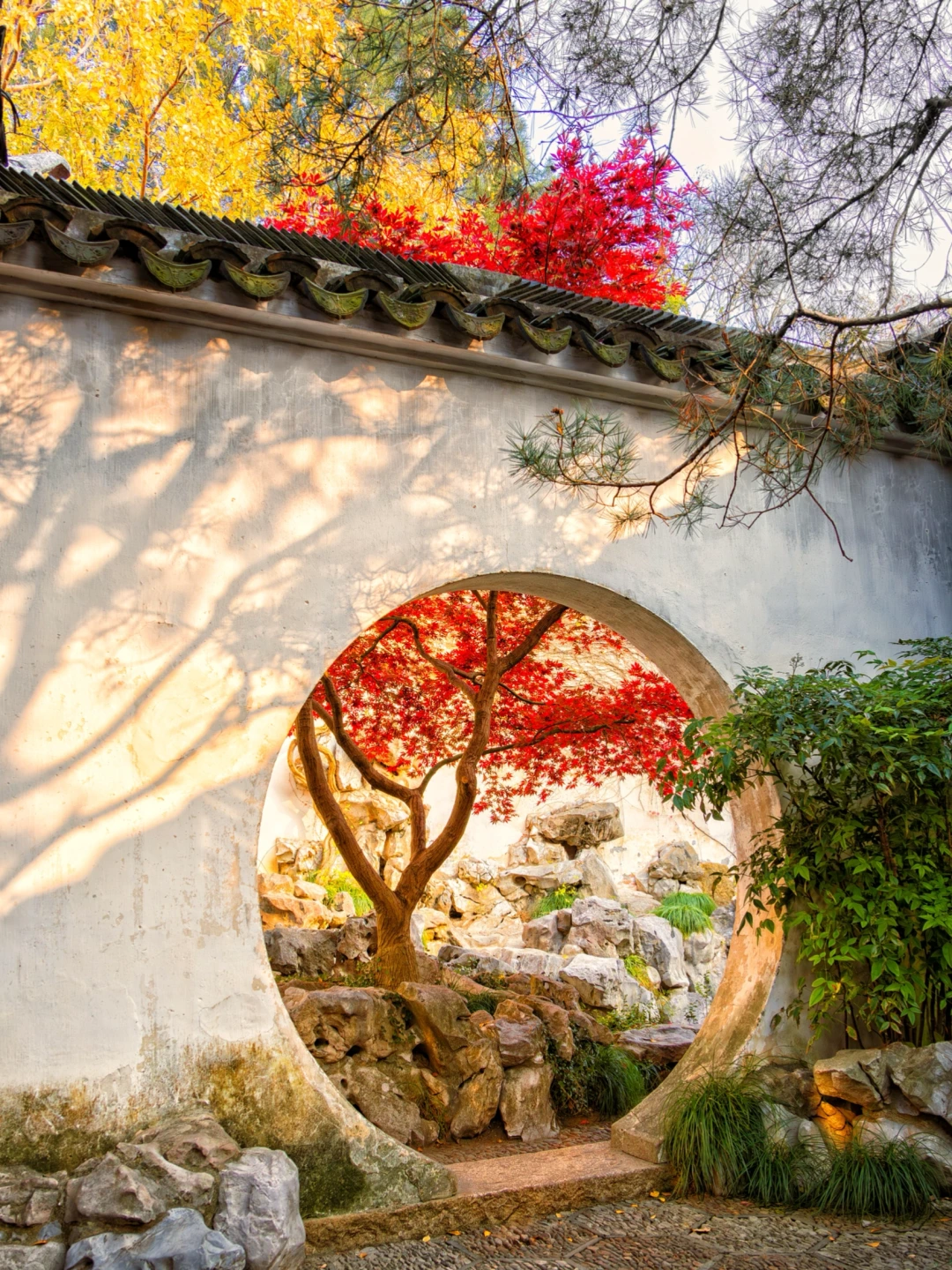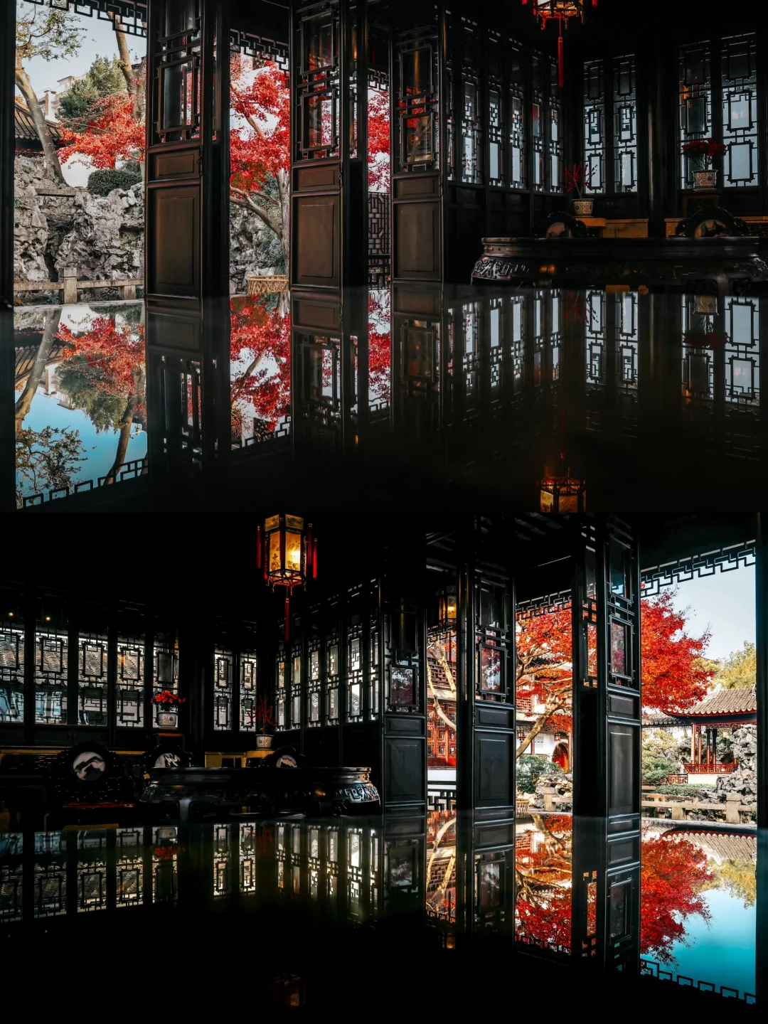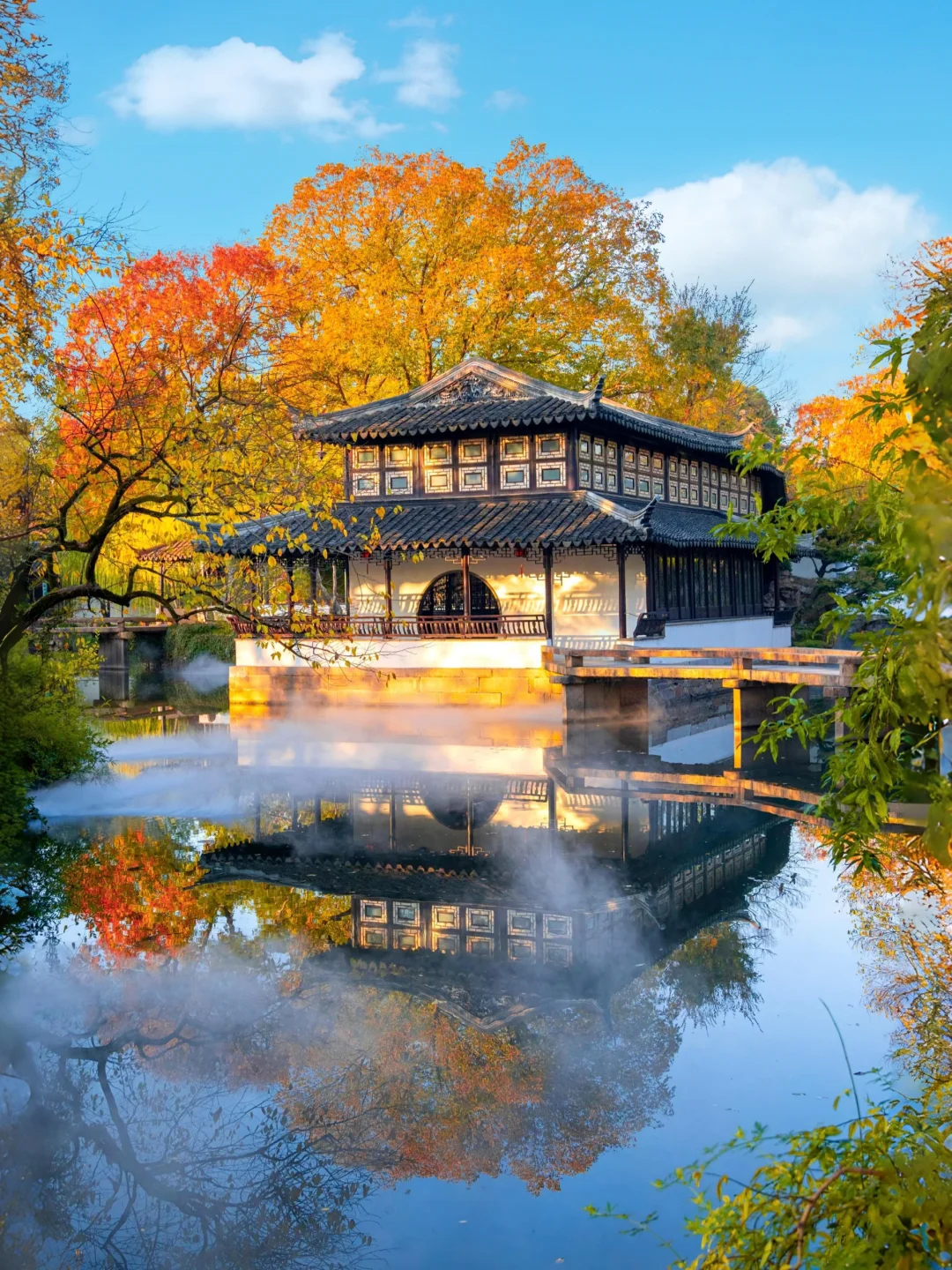1️⃣拙政园:江南园林亭台楼阁与彩叶相映