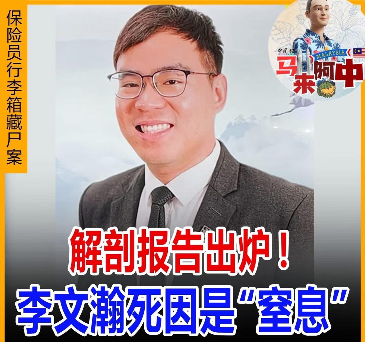 北马行李箱藏shi案又有新进展,称解剖结果出炉,31岁保险员李文瀚真正死因是“窒息”,而不是刚开始新闻爆出来的“割喉”,他的本田在行李箱位置约450米处被找到。 现在最新报道也改说李文瀚被发现时脖子上有明显“割痕”,难怪四五个大汉抬行李箱时,箱体和周边未见有🩸迹。 李文瀚个头不高,看着不够170的样子,但很活跃,每张照片都洋溢着笑容。 他是社团活动的常客,从事保险工作,还是个有点名气的媒体人,采访过很多马来的成功人士。 为何被害,何人动手,凶犯是单人还是有同伙,这些情况都在进一步侦查中。