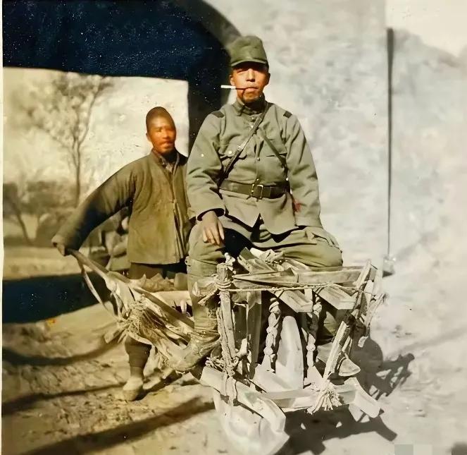 日本侵略者不仅在中国烧杀抢掠,推行惨无人道的三光政策,平日里还肆意欺压当地百姓,作威作福。有个日军瞧见一位推着三轮车的农民,这恶徒为了取乐,竟强迫农民推着他在大街上行走,以此在同伴面前炫耀自己的地位与所谓的荣耀,这无疑是对中国百姓的公然侮辱。亡国奴的生活就是这般屈辱。 因此,我们绝不能忘却这段历史,要努力振兴祖国,把祖国建设得强大无比,绝不让任何侵略者再次践踏祖国的土地。