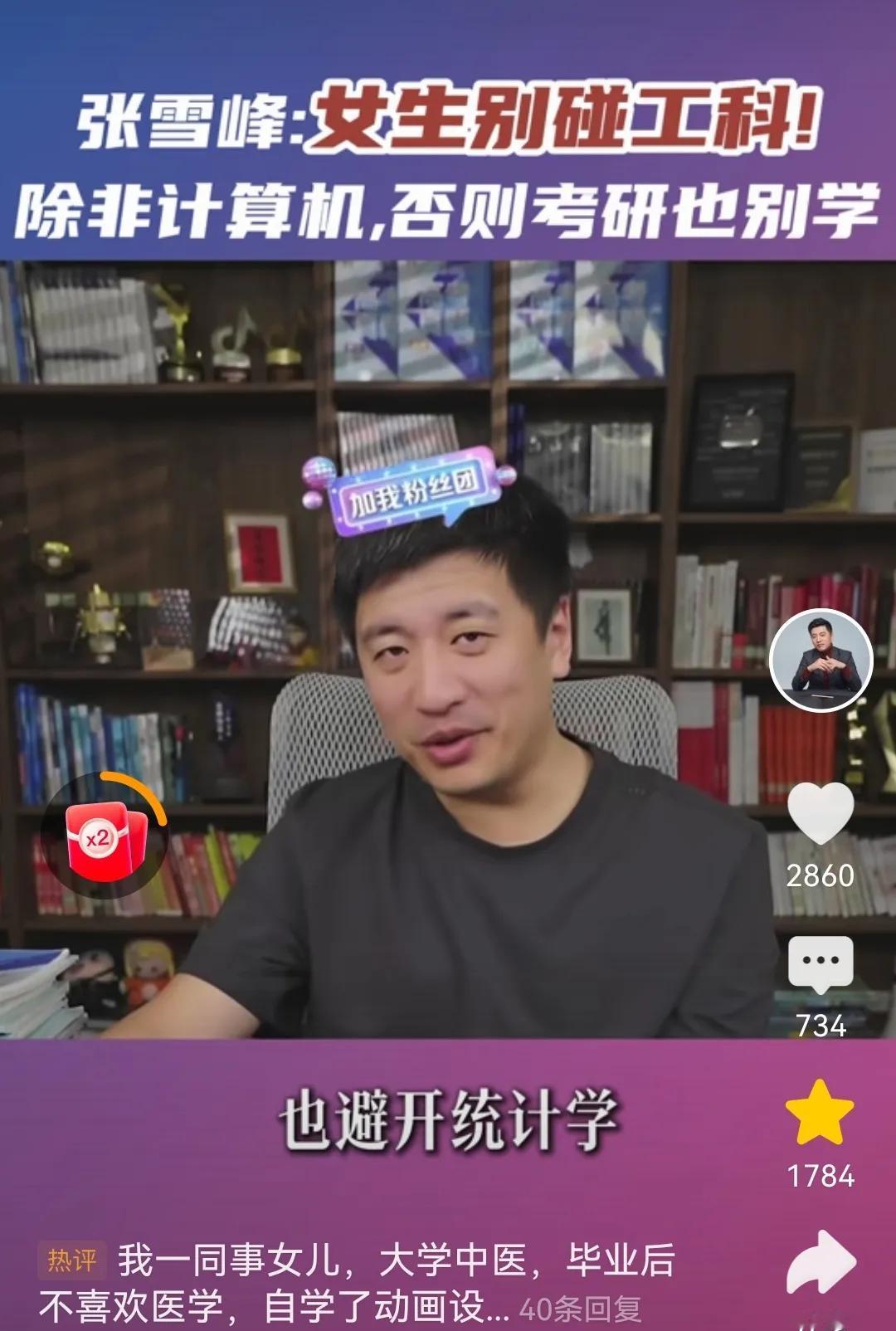 张雪峰老师说:“如果你是一个女孩子,在不考研的情况下,所有的工科尽量都别学,除了计算机;数学,物理学,统计学也一样,必须要考研。” 想一想还真是这个理,本科电气进电网要爬电线杆,机械要在工厂一线,先不说用人单位是不是会优先选男生,自己在体能上也是吃不消的。 那理科女生又都去哪里了?若要本科也能就业,该学什么专业呢? 我就是一个理科的女生最后选择了会计专业,感觉还是没前途,唉~ 小伙伴们,哪些专业理科女生可以放心报考呢? 网友评论: 我是学机械类专业的,以前做技术后面转质量,我没觉得男同胞可以做的,女同胞不能胜任!反而还是觉得学理工科,不管怎么转行,用处还是很大! 你们不要骂我肤浅没文化,我是真搞不懂,电子信息学得杂就不要让它那么杂,我就不信那些都是有用的。人工智能本科根本学不懂,是本科脑力不够用还是学科设置问题,根本没教有用的?药学本科出来只能卖药,是因为本科只学卖药吗?大把的青春年华浪费在专业不相干的科目上,直接往前挪不行吗? 潮汕朋友的女儿,和他说了不下三次考海关,入这校同等公务员上岸,这娃妈否同,去读理工,女人要生娃,女生受生理限制必定跑输男生,但人各有志。 今年我女儿高考592完上的师范 她同学女生654 上公安大学 说实话无论多少分 女生真的不好报 说考研 考公 哪这么容易啊 就业也不愁 先念着看吧 工科女生才是好选择!我就是学工科的,我们班就是女生混的比男生好,高工都有,学工科女生必须要有先苦后甜的意识,工科需要实践,光靠实验室研究生出不了好成绩,动手能力要强,你能直接上手能赢一大半,工科女生少,心细情绪稳定,这些都是优势,而且越老越吃香。 工科的女生相对男生不好找工作是事实,本来大学工科专业女生就少,有的专业甚至没有女生。高中文理分科时男生女生比就接近2:1了。我就是工科男,待了2个制造大厂,厂里女工程师很少,女工程师打辅助的多,当然女工程师技术很牛的人也有。我毕业找工作时,女生不直接招,有的女生是男朋友签约了,把她也附带招聘进来。招聘时工科女生要比男生明显优秀才能同男生竞争同一岗位的。毕竟工作时有出差、值夜班等。 我女儿高一马上就要选课了,我建议她要么学医以后钻整形美容这条线,要么语言+技能做国际贸易,就算是普通打工也去能赚外币汇率差的地方打。 现在所有大学本科学的都很浅,基本上是本专业的通识教育,名校也是如此。 但是名校保研率高,还有公务员选调,人才引进等机会,但是选调和引进也是研究生学历要的多,除非那些不重要的岗位。 所以女生能选的专业有限,尤其是理科生学渣,师范、临床、护士等对体力要求不高专业是重点选择对象。 别去选土木、机械,地矿油等就业环境差的专业,让男生去吧。 我们家闺女师范医生会计都不学,性格内向都补知道选还有啥专业适合,目前高二物化生。 个人觉得女孩子学工科确实不好,不是女孩工科就不了业的问题,关键是女孩学工科如搞研发技术,有时产品出了问题,要女孩出差,到那个环境很恶劣的地方去,自己还要在山上检修,大型产品还搞不动,还得带个小助理,很不方便呀。 听他片面之词,女孩学工科,微电子,半导体材料等等等等专业,校招待遇非常好,税后领的薪资都是w为单位。三星企业,比亚迪,字节跳动等等等等企业! 张雪峰 女生