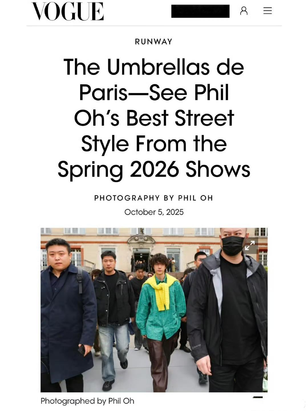 vogue官网2026春夏最佳街拍——王一博罗意威[得意]。 众星捧月,