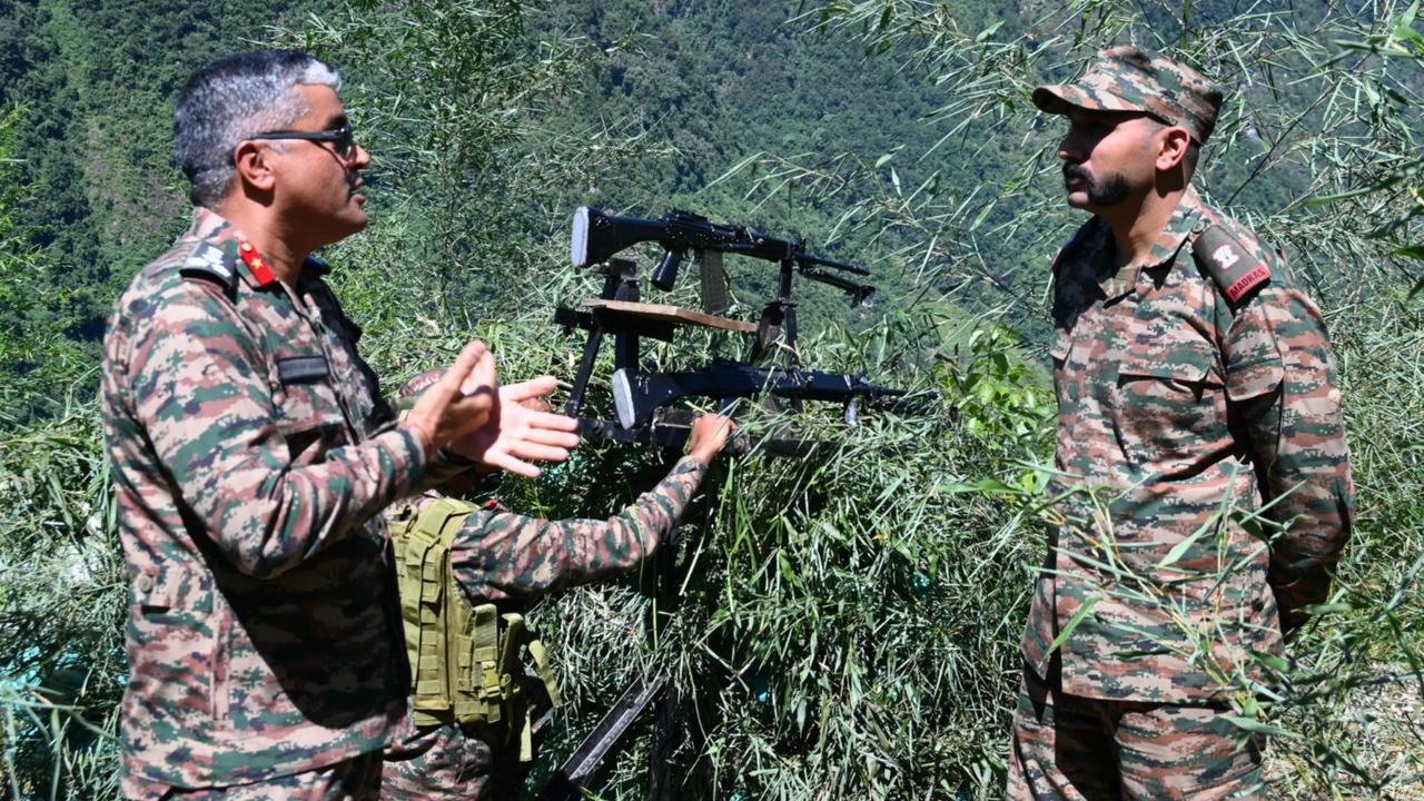 印度人的反无人机步枪,把几支因萨斯步枪装在一个架子上