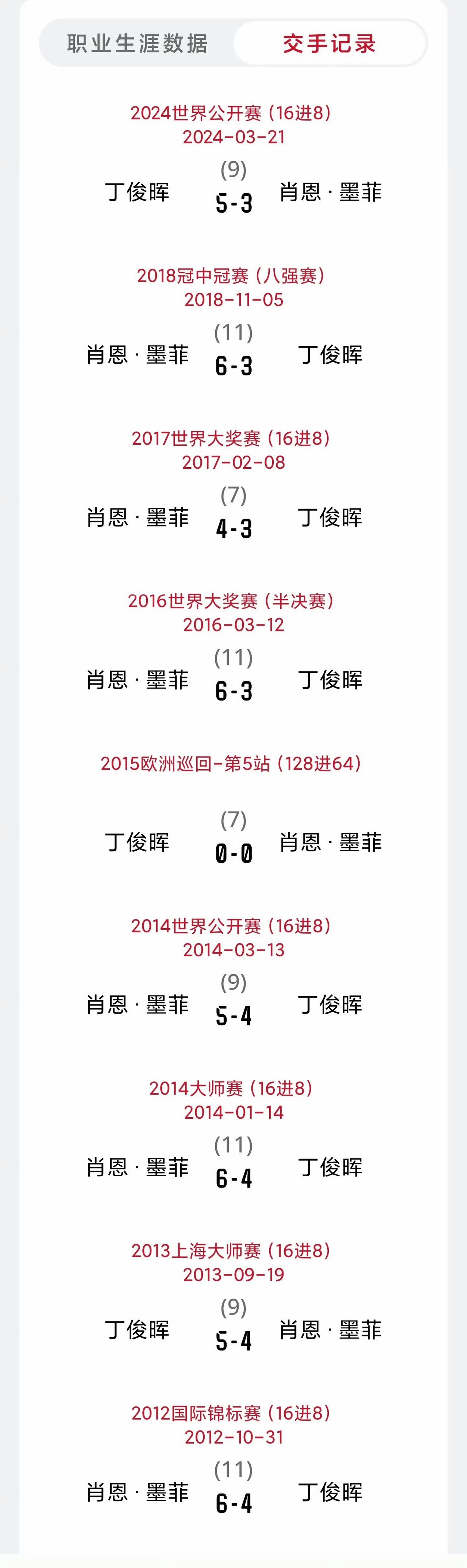 丁奥会能如期上演吗?2025斯诺克西安大奖赛1/4决赛,丁俊晖大战墨菲,火箭对阵咖哩。 丁俊墨菲此前交手27次,丁俊晖10胜16负1平处于劣势,最近几次交手都是轮流获胜。 两人上一次交手是在年初的世界公开赛,墨菲5-2获胜。再之前的利雅得锦标赛,丁俊晖4-0获胜。 按规律轮到丁俊晖赢球了。