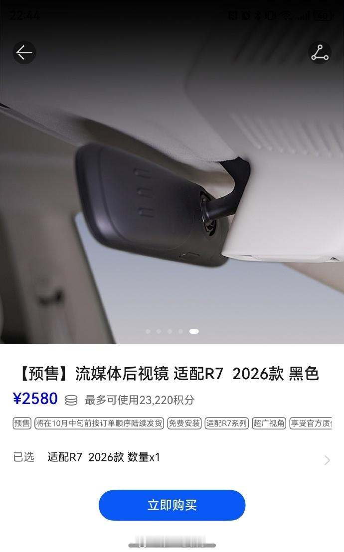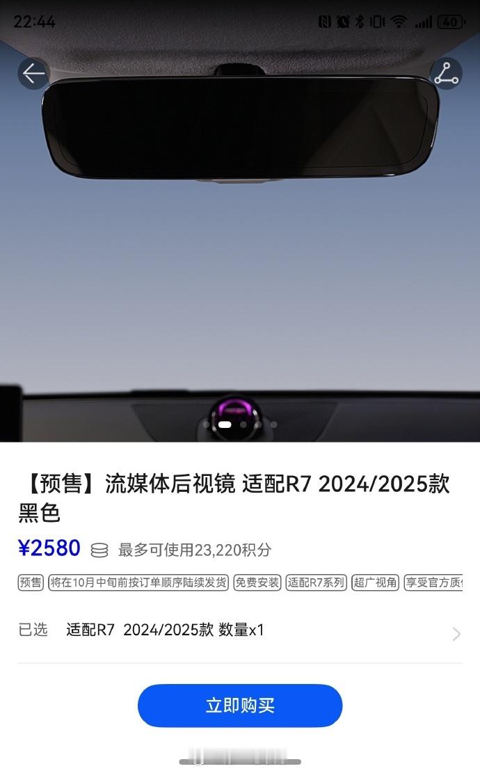 对于一辆智能电动车,你会选择花2580元(或用积分抵扣)加装这样一个原厂流媒体后视镜吗[思考]