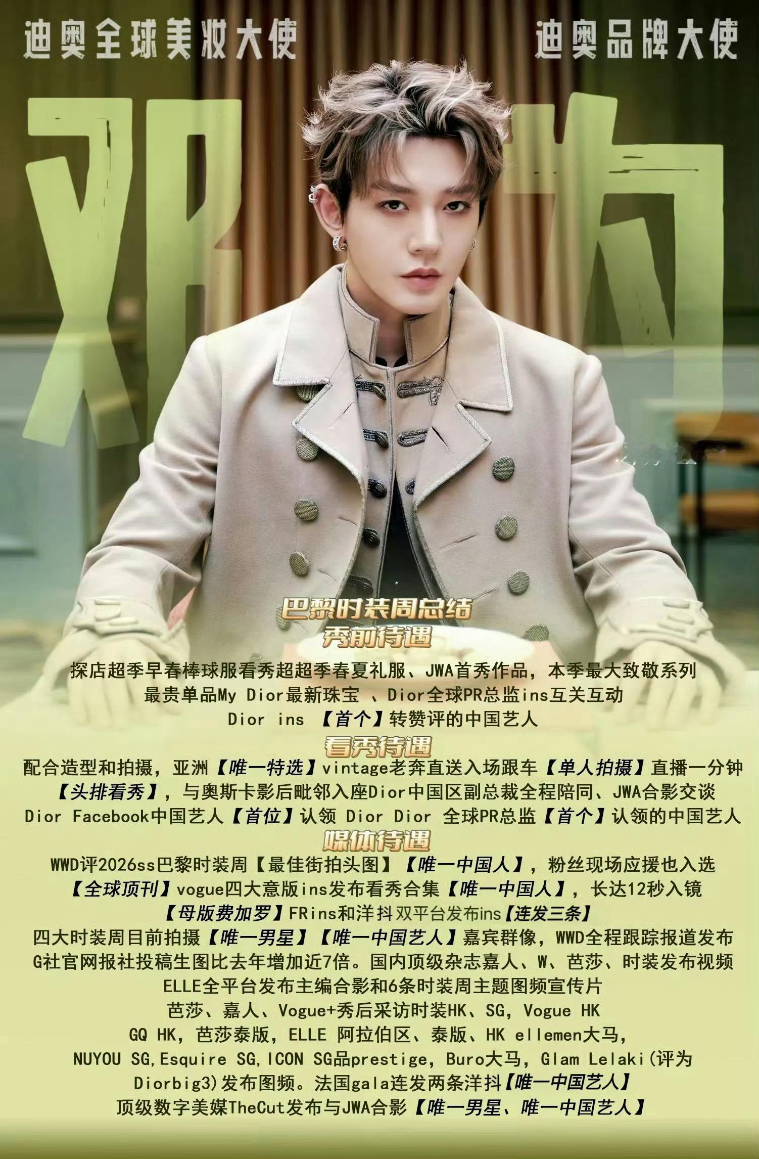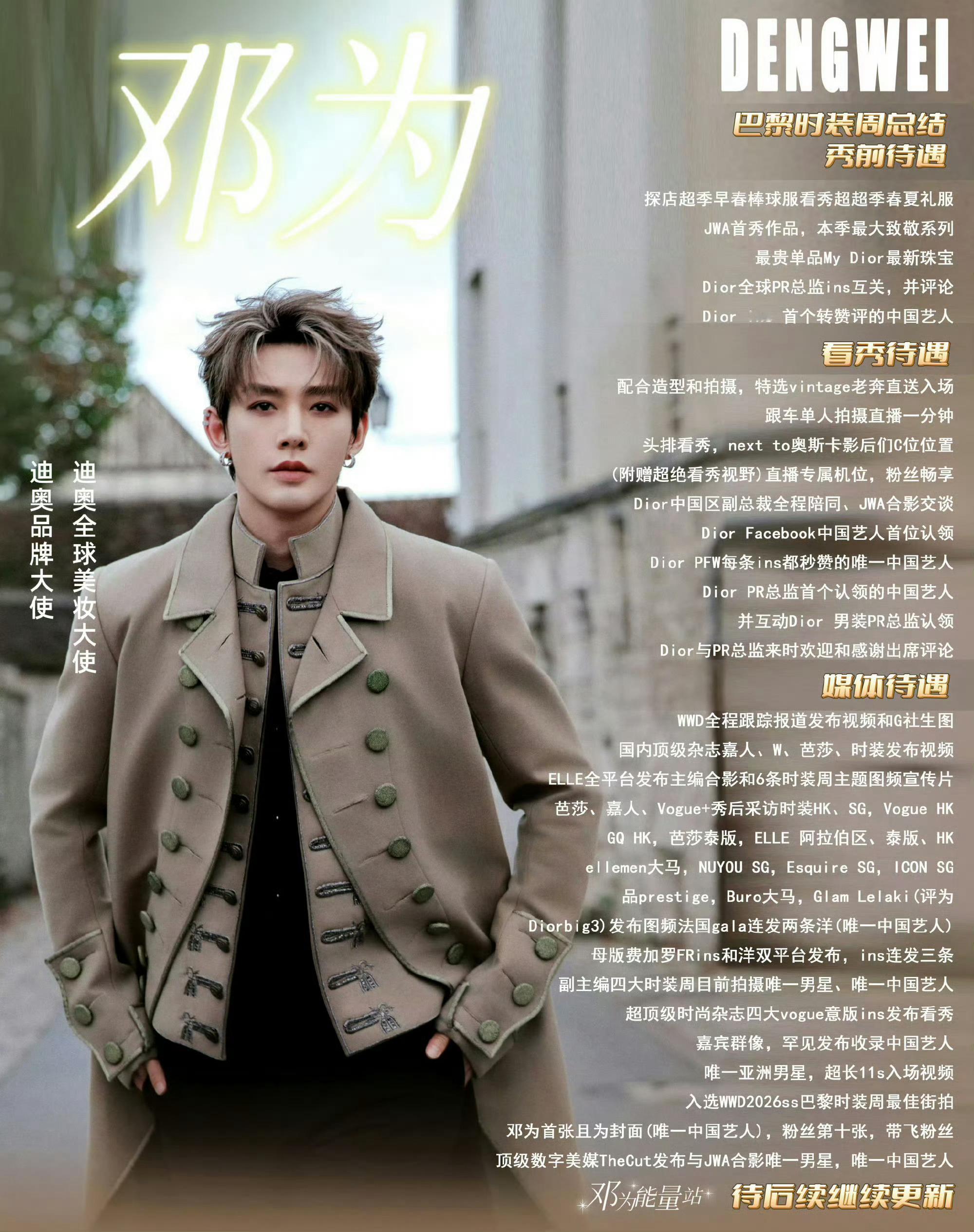 邓为实力闪耀巴黎时装周!各媒体待遇汇总,已有30+国际知名媒体报道或采访,更有多