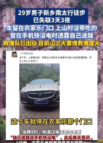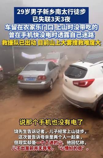 10月7号,29岁男子去河南新乡南太行山徒步,在手机电量即将耗尽时,给农家乐老板拨了过去,传递出一个重要信息:已经迷路了,身上没吃的,没有充电宝,希望能够寻求帮助。 10月9日下午,河南新乡辉县上八里镇上午峪的山脚下,60多岁的饶先生裹着雨衣站在临时救援指挥点外,眼睛红得像布满血丝的灯笼。 已经两天了,山里这么冷,他就穿件薄外套…… 话音未落,老人的声音就被呜咽的风声吞没。 这场揪心的搜救背后,是一个29岁男子意外失联的全过程。 事情要从10月7日说起,当天上午,饶某某开着一辆别克轿车从商丘永城出发,一路开到辉县上午峪的“老农家”农家乐。 他把车停在门口,跟老板打了声招呼就独自进了山。 出发前,他还跟母亲说“有两个同伴一起”,可直到后来失联,家人才知道他是孤身一人。 7日晚上8点,农家乐老板突然接到饶某某的电话,语气慌张得厉害,我迷路了,手机快没电了,身上没带吃的,能不能来帮帮我? 然而老板刚想问清具体位置,电话就断了。 等到8日晚上,车子还停在门口,人始终没回来,老板才意识到不对劲,赶紧报了警。 这辆停了两天的别克轿车,成了目前最明确的线索。 有村民说,之前见过饶某某在农家乐门口摆弄这辆车,还把立标改成了类似“迈巴赫”的样式,看得出来是个爱动手的小伙子。 可谁也没想到,这个平时常上山徒步的人,这次会栽在熟悉的山里。 9日一早,当地警方就带着蓝天救援队的队员进了山,后来星火救援队、特警也陆续赶来,前前后后凑了上百人。 但山里的情况比想象中恶劣得多:持续的阴雨把山路泡得泥泞不堪,一脚踩下去能没过脚踝,旁边就是随时可能掉落石块的悬崖峭壁。 更要命的是大雾,能见度不足5米,站在跟前都看不清队友的脸。 热成像设备在这种潮湿天气里也完全失效,只能靠人踩着羊肠小道一点点搜。 到了下午4点,雨下得更大了,为了避免救援人员遇险,指挥部只能下令暂时撤下山,等待天气好转。 比搜救难度更让人揪心的,是家属的煎熬。 饶先生9号中午就从永城赶了过来,一到指挥点就拉着救援人员问情况,说着说着就哽咽,我就这一个孩子,就算下刀子我也得上去找他。 他说儿子平时经常爬山,按说该懂规矩,可这次不仅没带食物和充电宝,连定位都没给家里发一个,更没联系警方。 截至10日下午6点,饶某某已经失联超过72小时。 河南气象网显示,山里白天温度勉强有14℃,到了晚上能降到10℃以下。 虽然这个季节山里有野葡萄、柿子能暂时充饥,但他身上那件薄外套,根本扛不住夜里的寒气,失温成了最致命的威胁。 更关键的是,不少徒步者总犯“经验主义”的错。 饶某某觉得自己常爬山就掉以轻心,没带专业装备。 应急管理部反复强调的“四要四不要”里,明确说了要选正规路线、带专业装备、结伴同行,可这些提醒往往被当成耳旁风。 徒步本是亲近自然的方式,但绝不该变成拿生命冒险的游戏。 那些被滤镜美化的“野路线”,那些被简化的“徒步攻略”,背后可能藏着看不见的危险。 希望饶某某能撑住,等着救援人员的到来。 更希望所有徒步爱好者能记住这些教训:出发前多一份准备,就少一份风险;对自然多一份敬畏,就多一份安全。 信息来源:澎湃新闻2025-10-09发布:河南一男子南太行山徒步失联,当地警方:搜救难度较大