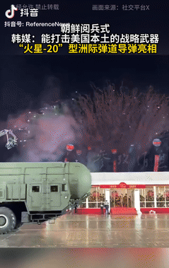 朝鲜凌晨举行大阅兵,展示多款新型武器装备,更有能打击美国本士的战略武器亮相现场。 为了庆祝劳动党成立 80 周年,朝鲜在10月10日的晚上,直接办了场大阅兵,一直弄到凌晨,还赶上飘着雨,探照灯的光混着雨丝扫过金日成广场,那场面又特别又有冲击力。 最先让人眼前一亮的是个特殊方队,队员们一边扛着朝鲜国旗,一边扛着俄罗斯的国旗,迈着整齐的正步走过主席台, 再说说那些硬核武器,简直太顶了,有个叫“火星- 11E”的导弹,弹头是特殊形状的,有外媒觉得,这款导弹可能又是一款超音速形的。 而共同出场的“火星 - 20”更厉害,是能打遍美国本土的洲际导弹,它一亮相,全场欢呼直接盖过了雨声。 还有无人机发射车、“天马- 20”坦克也挨个登场,明眼人都看出来,朝鲜现在海陆空都能搞核打击的本事,这次全亮出来了。 其实这场阅兵的时间和天气都是有讲究的,低温能让装备保持稳定,深夜天黑,导弹发射车不容易被发现,威慑力直接拉满。 而且这也是朝鲜的老传统了,比如劳动党75周年那回,就是凌晨搞的阅兵,不是随便选的时间。 前一天金正恩还在庆祝大会上说,接下来 10 年要让朝鲜有 “全方位的大变化”,中方也发了贺电,夸朝鲜在社会主义事业上做得好。 等最后一辆导弹车消失在早上的雾里,大家都明白,这场盛典不只是庆建党80年,更是朝鲜秀实力、释放外交破局信号的机会。