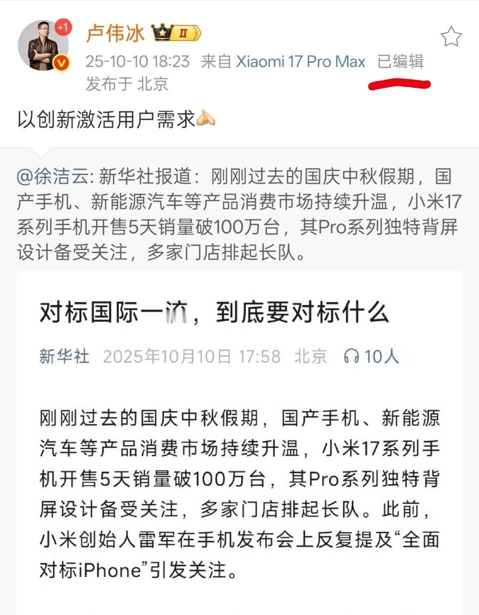 刚看了一下,“以雷总创新激活用户需求”已经被编辑掉了[笑cry]