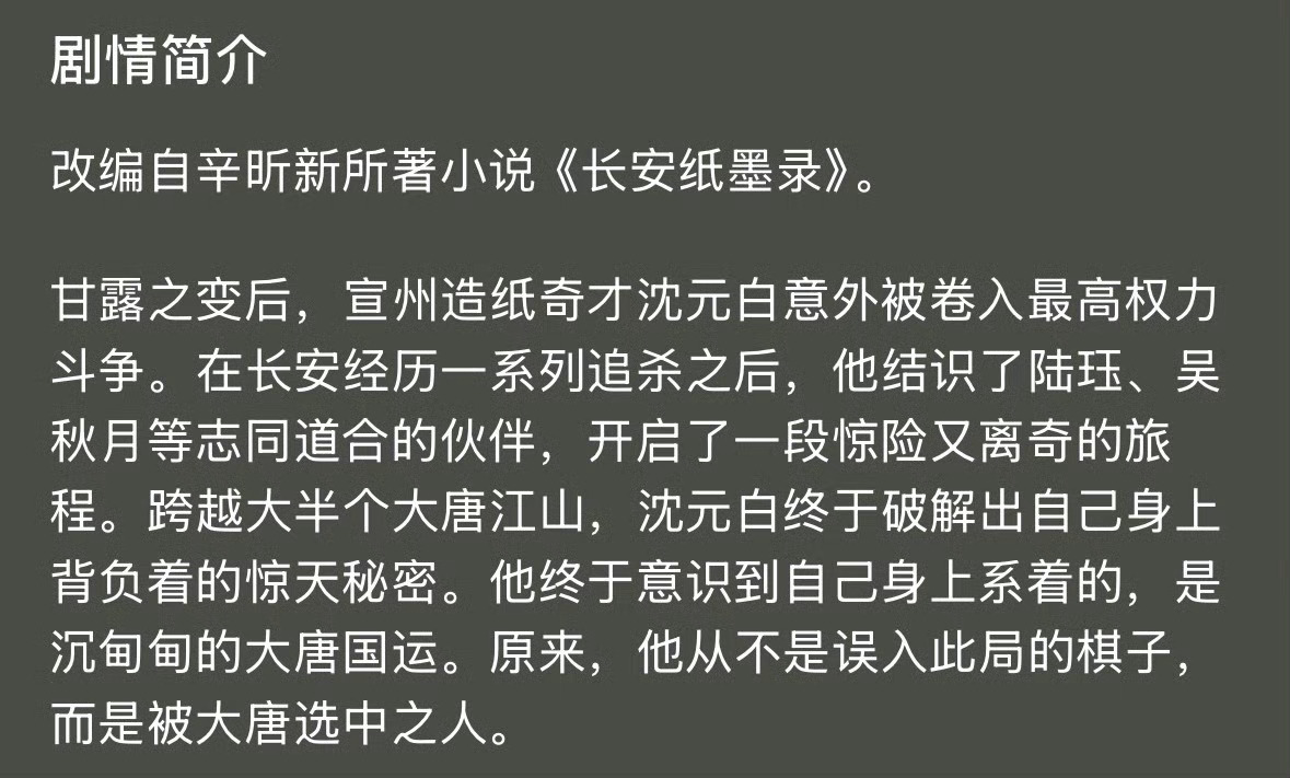罗云熙《长安纸墨录》剧情看点,暂定11月开机
