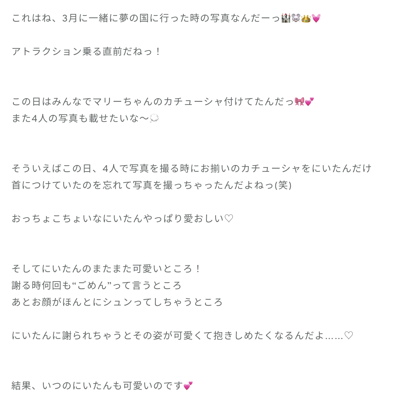大田美月「🛎️カンカンカーン🛎️にいたんの幸せな時間終わりでーすっ!はああ楽しかったね〜💭可愛い可愛い最年少これからもたくさんお姉さんたちに甘えてねっ💕いつでもヨシヨシするからねっ♡にいたんとのペア名二人でいる時よく何がいいかなって話すのに未だに決まらない…(笑)そろそろ決めようねっ♡」