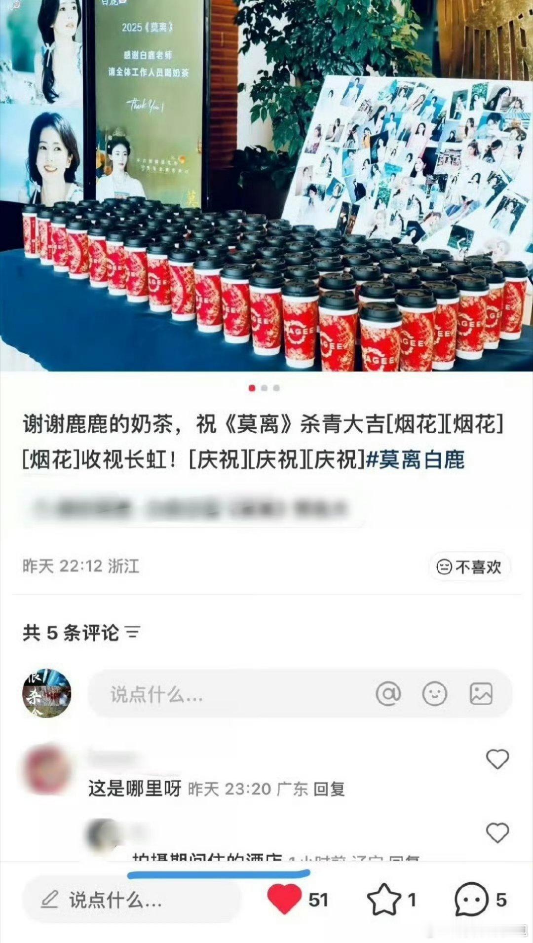酒店工作人员夸白鹿酒店工作人员发长文夸白鹿,白鹿请酒店工作人员喝奶茶,这样好的白
