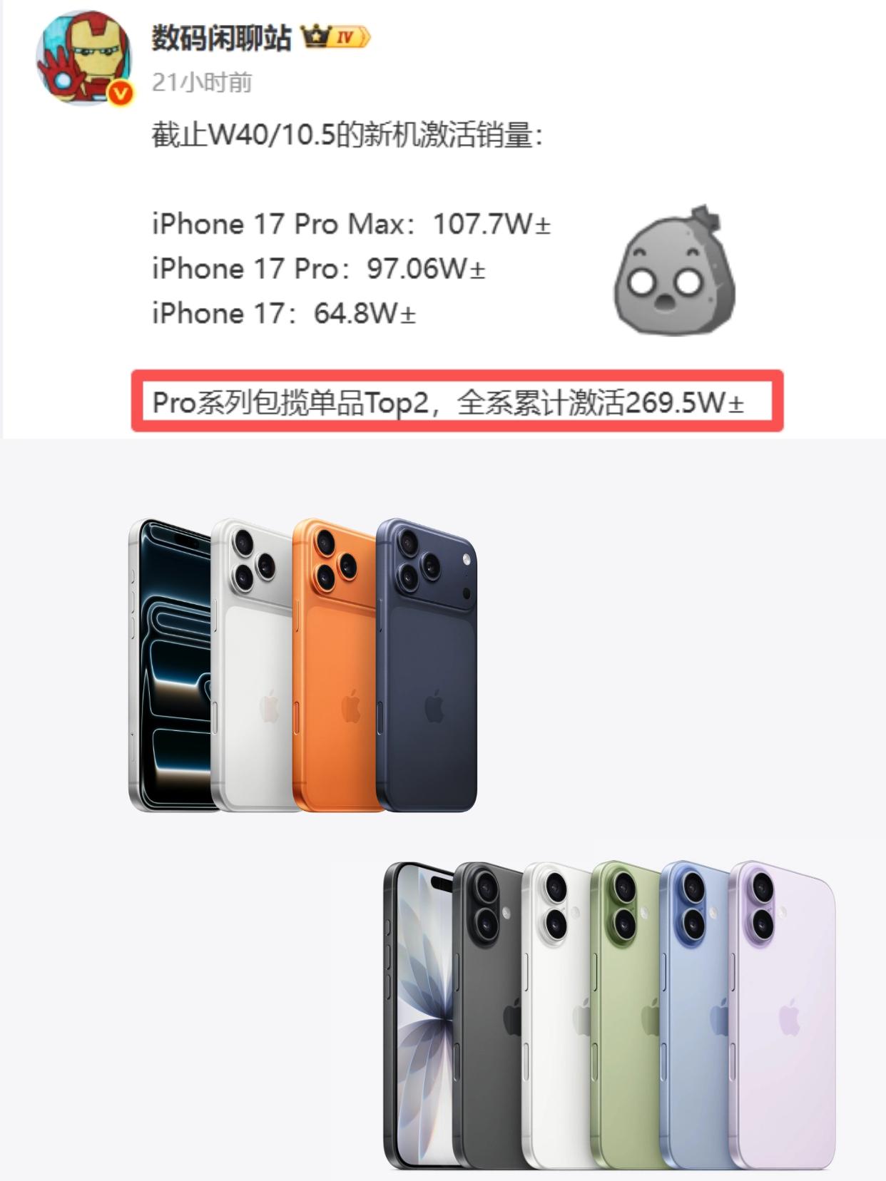 都说要超越苹果,一看销量就傻眼了...... 你说这咋整嘛,iPhone 17系列开售还不到一个月,270w了都!!马上就300w了。。。 主要是卖得最好的还是最贵的iPhone 17 Pro Max,越贵卖得越好,这扯不扯,还记得之前国产手机厂商都在说什么要超越苹果,打造高端,结果还是苹果一骑绝尘,这是真没辙吧?