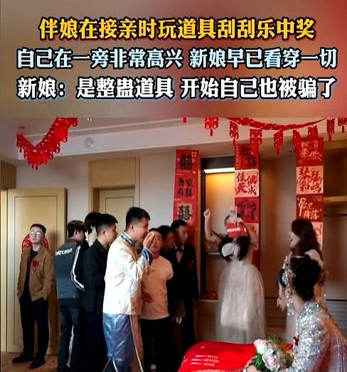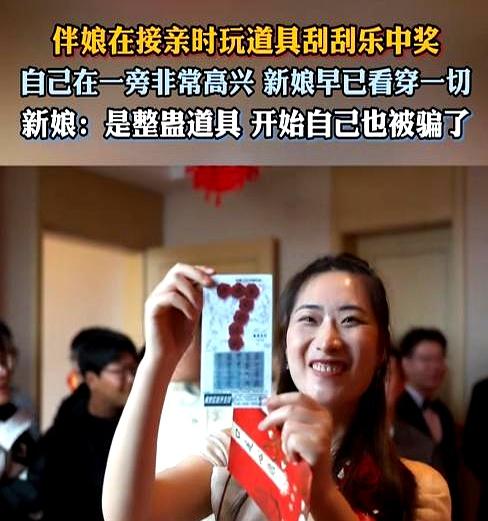 伴娘当场蹦老高! 举着手机满场喊:“中了100万!今晚我请客!”新娘在婚床上笑而不语——这刮刮乐是她网购的仿真道具。 伴娘知道真相后,脸一下子红到耳根,捶了新娘两下:“你可真行,白让我激动半天!” 这事发到网上,评论区吵翻了。 有人说:“结婚是喜事,哪怕送张2块钱彩票呢?2块钱换个真开心,不比假的强?”也有人觉得:“道具就是图个乐,伴娘也没生气,没必要上纲上线。” 据了解,现在婚礼刮刮乐互动成新潮流。 某电商平台数据显示,婚庆类刮刮乐月销超10万单,仿真道具0.5元到3元不等,印着“恭喜发财”“谢谢参与”等字样。 也有新人选择真彩票当伴手礼,10元、20元一张,图个吉利。 还有人会定制书签、手工皂等创意伴手礼。 这类婚庆创意道具近年很受欢迎,既能活跃气氛,又能给宾客留个纪念。