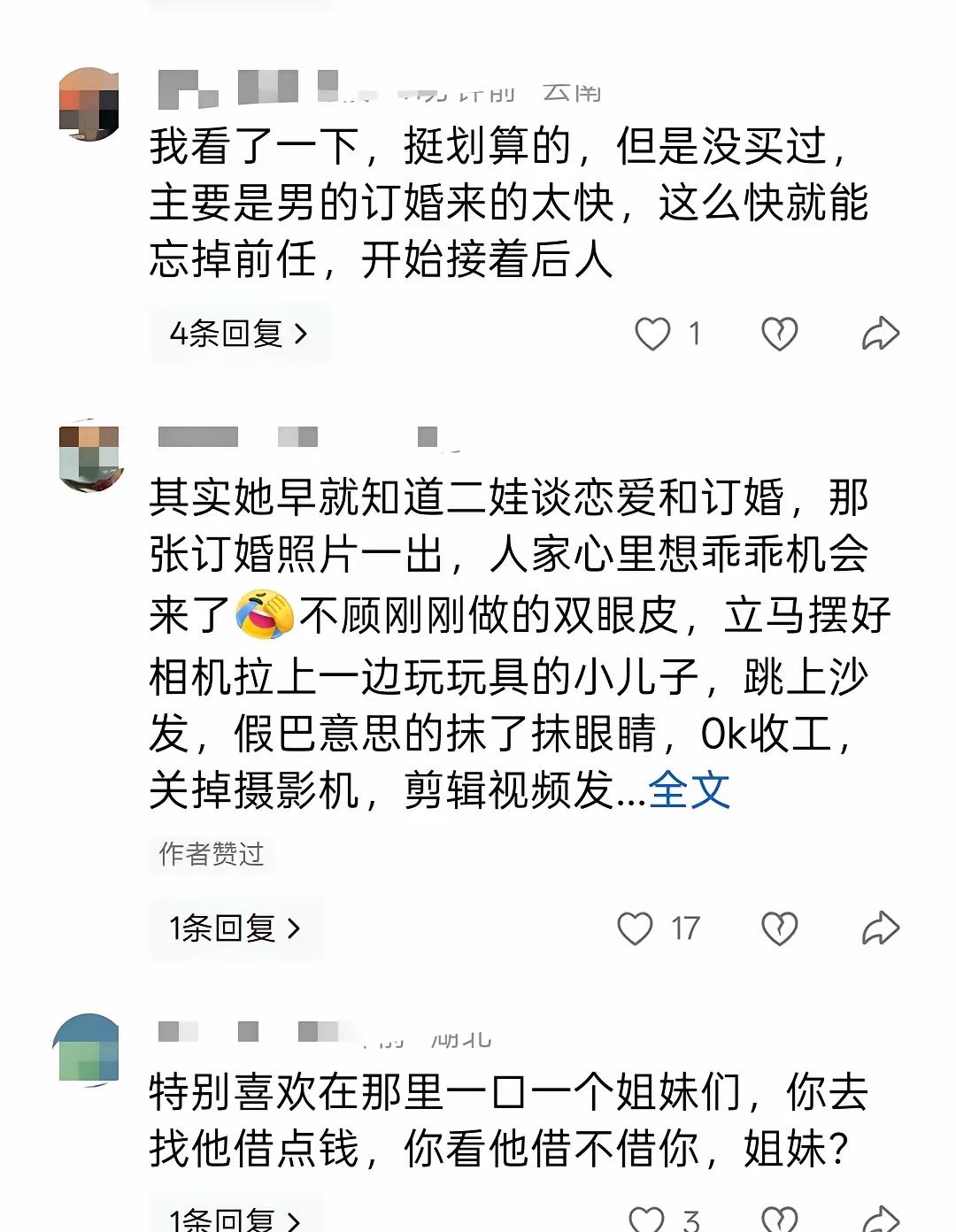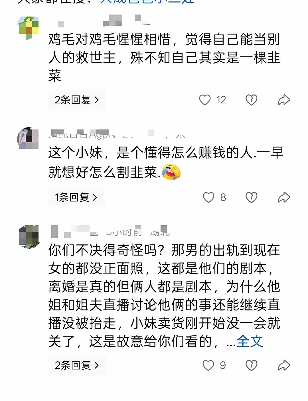 自从川乡小妹儿修复双眼皮以后眼睛肿胀就没有消过,这给同情的人又加了色彩。 就着小二娃与吴晓慧订婚的事情小妹儿哭得梨花带雨, 就着接娃过生日又要责备小二娃将小成成接回过中秋节,小妹儿说小二娃被刺激了, 就着直播间过生日邀请大家进直播间陪过生日又卖货这些事,小妹儿说感谢家人们[捂脸] 又是感谢家人支持又是哭红双眼与她感同身受思娃成疾的感受的宝妈们,眼泪都是一直在流着。真的很带劲。 直播间中断过,但不妨碍再接着来,一场过生日就在直播间中卖货与共情度过。 姐妹中,家人中是有一部分人善良的,但善良是被收割的对象吗? 看得到这一切发生后的林林总总,各有见解与观点。 小二娃那次放的协议出来,协议没有给她和娃儿信息打码的确不妥(后来意识删了)但正是这样,让大家知道了她背后积累的财产。 不是她说的一无所有,什么都没有得到,只有两个娃在身边。 粉丝的共情都是以骂小二娃为发泄对象,只有两个娃吗?小二娃在打她脸呢? 协议的公布财产的积累,都是与小二娃共创。 小二娃连最后的体面都得不到, 网友在污蔑小二娃的时候是谁造成的?小妹儿的财不外露,才没有说家产的事,就真的那么有说服力吗? 她真的有想过,她的每一句话带给小二娃会是與论的灾难吗? 每次小妹儿直播小二娃的话题都在她的直播间,她用离婚的流量已经太多了太多了。几个月了,都是这个离婚的流量。 小成成因为抚养权与小二娃有关,有了小成成的话题,又是流量的聚集方式。 只要说,狂说,假想小成成会被后妈虐待的戏还是会上演的! 不会停,除非小妹儿真的遵守原则放过小成成,让他有父爱有母爱真正健康地成长。 从离婚的流量来说,的确她更好地利用重复重复利用,但从选品卖给姐妹们的产品,姐妹们的口袋捂不住就去买吧!都去支持吧!希望不要像韩国那次那样又大翻车。 小二娃,说到底事到如今还是保留了一些体面。[捂脸] 小妹公开谈离婚 川乡小妹儿婚变 川乡小妹 川香小妹儿 女孩割双眼皮 小二娃 小妹儿