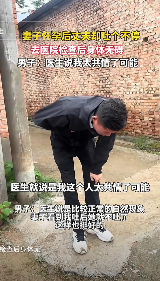 “笑不活了!”山东菏泽,男子妻子怀孕9周了,妻子还没感觉哪里不舒服,男子却没有恶心呕吐,吃不下饭,走到哪里吐到哪里,妻子担心不已,带他到医院检查,医生却说他身体一切正常,可能太会共情了! 李先生的妻子怀孕了,去医院检查后,李先生一直担心妻子。 没想到,妻子怀孕第9周时,李先生感觉恶心想吐,看到饭菜都会一阵翻江倒海,跑到门外吐一番。 妻子感觉有点不舒服时,李先生比她症状还严重,家里人也打趣的说像是他怀孕了。 本以为这症状几天就会好,李先生持续了一周后,感觉自己反而加重了,到医院检查,医生也检查不出来什么,最后诊断,他是太能共情妻子了,这才出现了呕吐。 李先生这不是个例,之前也有准爸爸在妻子怀孕后,一直呕吐,一直到妻子生了孩子情况才开始好转。 这期间,像是他替妻子承受了一些压力,妻子反而没怎么呕吐。 这也很好解释,一些准爸爸也是第一次当父亲,难免会有紧张、焦虑的情绪,这种情绪会直接影响到他们的胃口和消化。 出现几次这种症状后,就会形成惯性,那呕吐的情况就更严重了。 其实准爸爸只要放松心情,不要多想,把心思多用在照顾孕妇身上,就能迅速缓解了。 李先生出现这种情况,还是太爱自己的妻子了,知道妻子怀孕会不舒服,他甚至将不适延续到了自己身上。 还有网友想起自己怀孕的时候,没有呕吐,也没长妊娠纹,倒是丈夫的腿上、肚子上都是妊娠纹一样的痕迹。 这可能是孕妇爱吃的东西,丈夫也吃了不少,他长得应该是肥胖纹。 有网友表示,这是成功让丈夫分担自己不适了,对妻子来说,也算怀孕时的趣事。 丈夫有了这段遭遇,会更容易体谅妻子怀孕中的不易。 因为他没有怀孕,仅仅是呕吐就会严重不适,甚至到了得去医院看的程度,跟他相比,妻子需要承受的就更多了,想到这些,丈夫会更共情妻子的不易。 等孩子出生后,他也会主动承担更多养育孩子的责任,让妻子好好休养身体。 你遇到过这种情况吗? (来源:河南商报 2025年10月10日 妻子怀孕后,丈夫却吐个不停,去医院检查身体无碍,男子:医生说我太共情了可能)