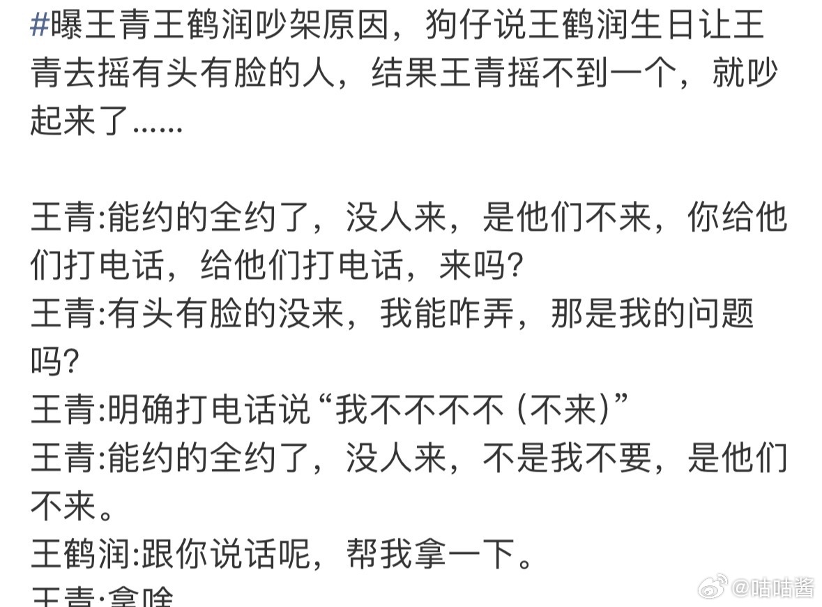王鹤润因为王青没约到有头有脸的人生气王鹤润因为王青没约到人生气王青虽然翻红了