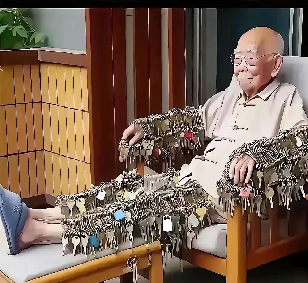 广东大爷堪称“包租公界的天花板”! 手臂、腿上挂满密密麻麻的钥匙,每一把都可能