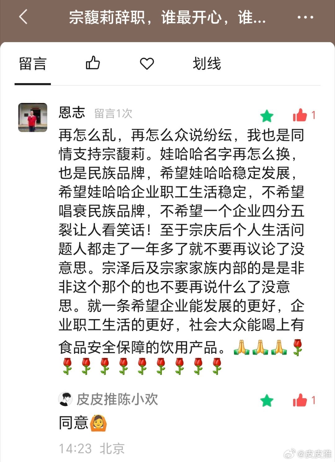 娃哈哈任命许思敏为总经理网友:娃哈哈名字再怎么换,也是民族品牌,希望娃哈哈稳定发展,希望娃哈哈企业职工生活稳定,不希望唱衰民族品牌,不希望一个企业四分五裂让人看笑话! ​​​