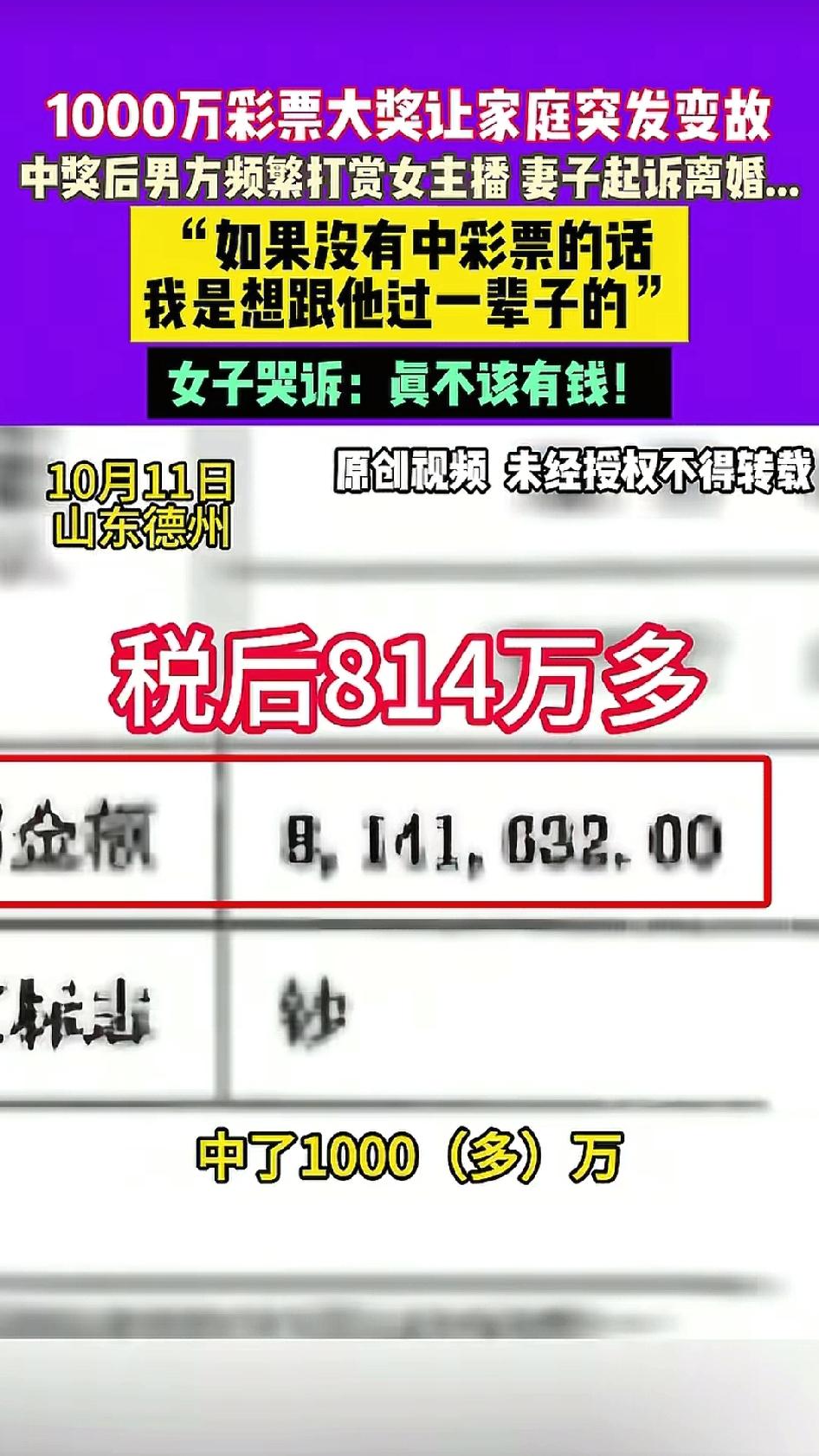 今天一起来吃个瓜!德州一个老哥,彩票中了1000多万,税后814万,本来是天