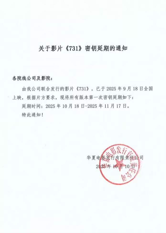 电影《731》延长上映至11月17日,目前影片累计票房已达18.79亿。
