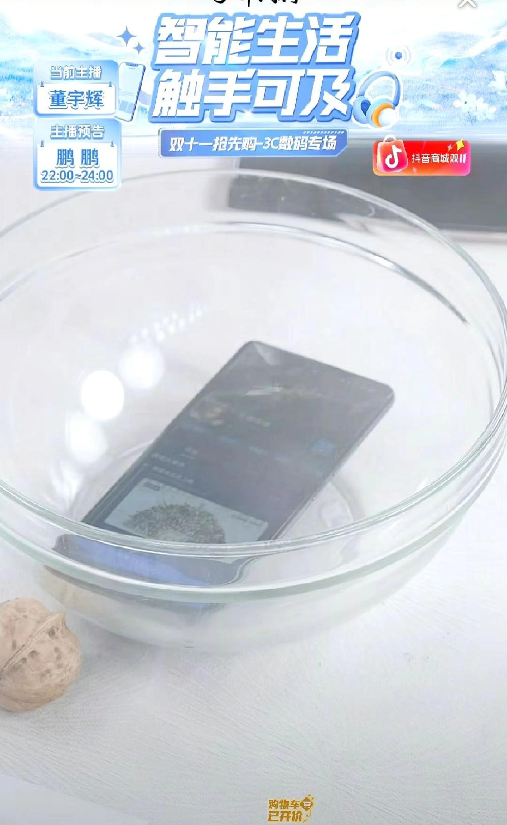 你以为董宇辉拿手机砸了核桃和钉子就完事了吗?没有,他还把手机丢在了开水里测试。 这是一个非常残暴的测试方式,先丢到开水里,然后又放在凉水里经过一系列测试,手机确实仍然没有任何问题。不过在测试之前,董宇辉说:“我觉得不科学,真的可以放在开水里吗?但是厂家说了,我就好奇一下,我觉得这个更好玩,这个测试更魔性一些。” 他在将手机扔进开水壶之前和厂家确认了好几遍,真的可以吗?你确定,真的可以吗?那你离开一点,万一炸了怎么办?之后在厂家工作人员的配合下,他把手机扔进了装着开水的开水壶里,厂家工作人员拿夹子把它夹出来,又放在了凉水里,经过一系列的测试,手机仍然没有任何问题。 有网友说:“这手机做错了什么?”真是太搞笑了。董宇辉说这款手机特别的耐造。 说真的,我还是第一次看到这样的测试,以前真的不敢想象手机还可以丢在开水里。看宇辉直播真长见识。这款手机宇辉都全方位的帮你们测试好了,可以放心购买。 董宇辉 与辉同行