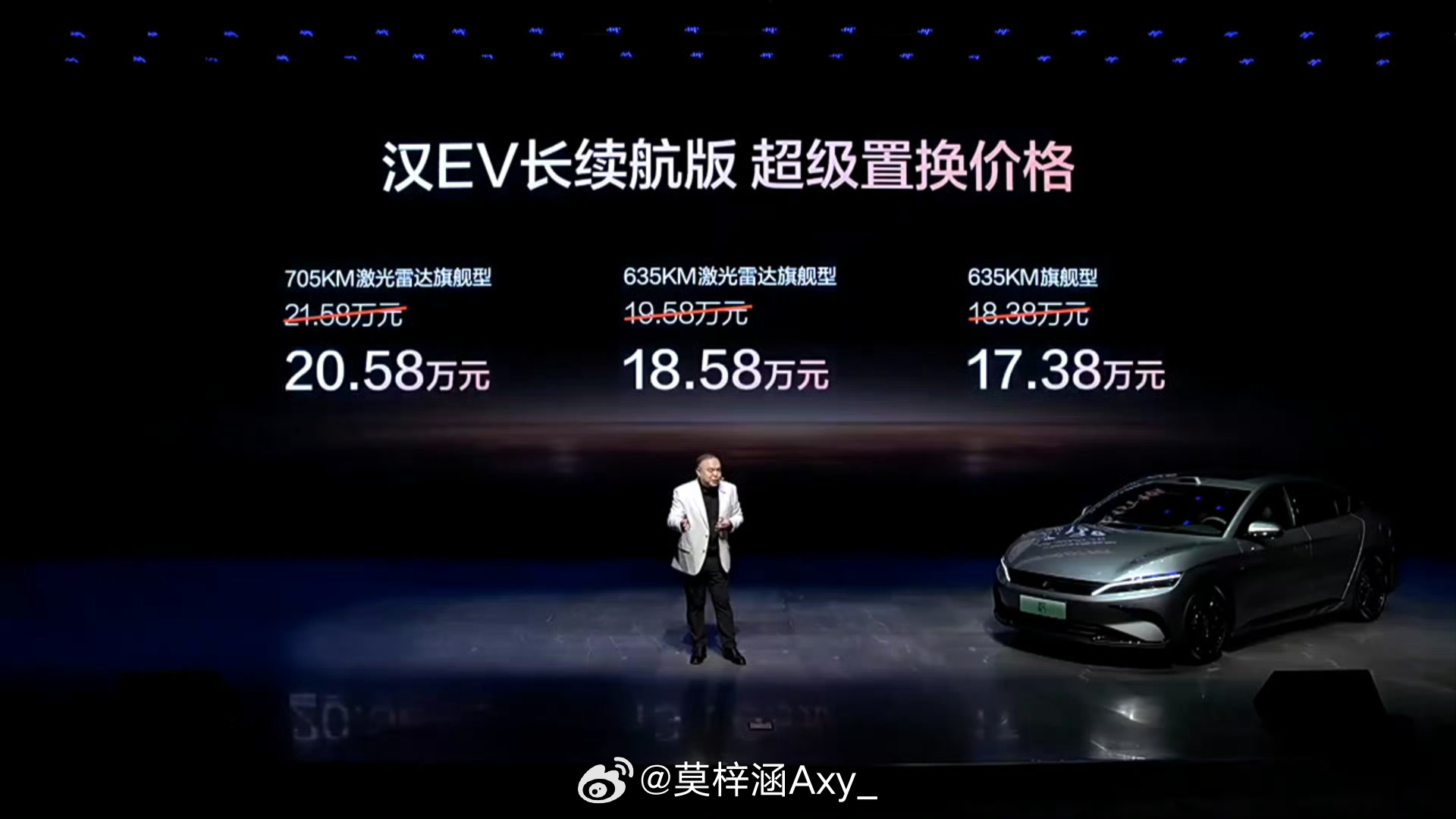 比亚迪汉长续航版15.98万起上市比亚迪汉长续航版以15.98万置换起售价震撼上