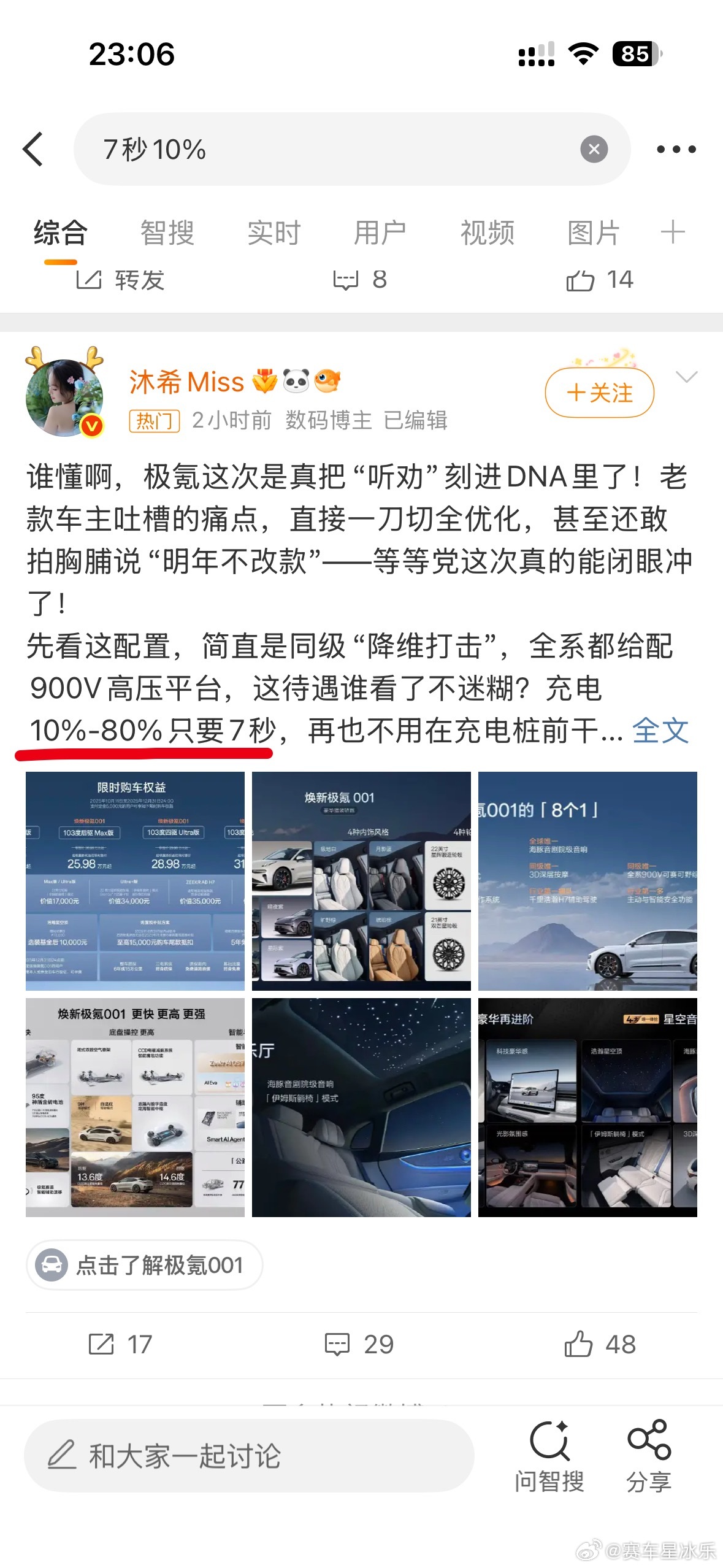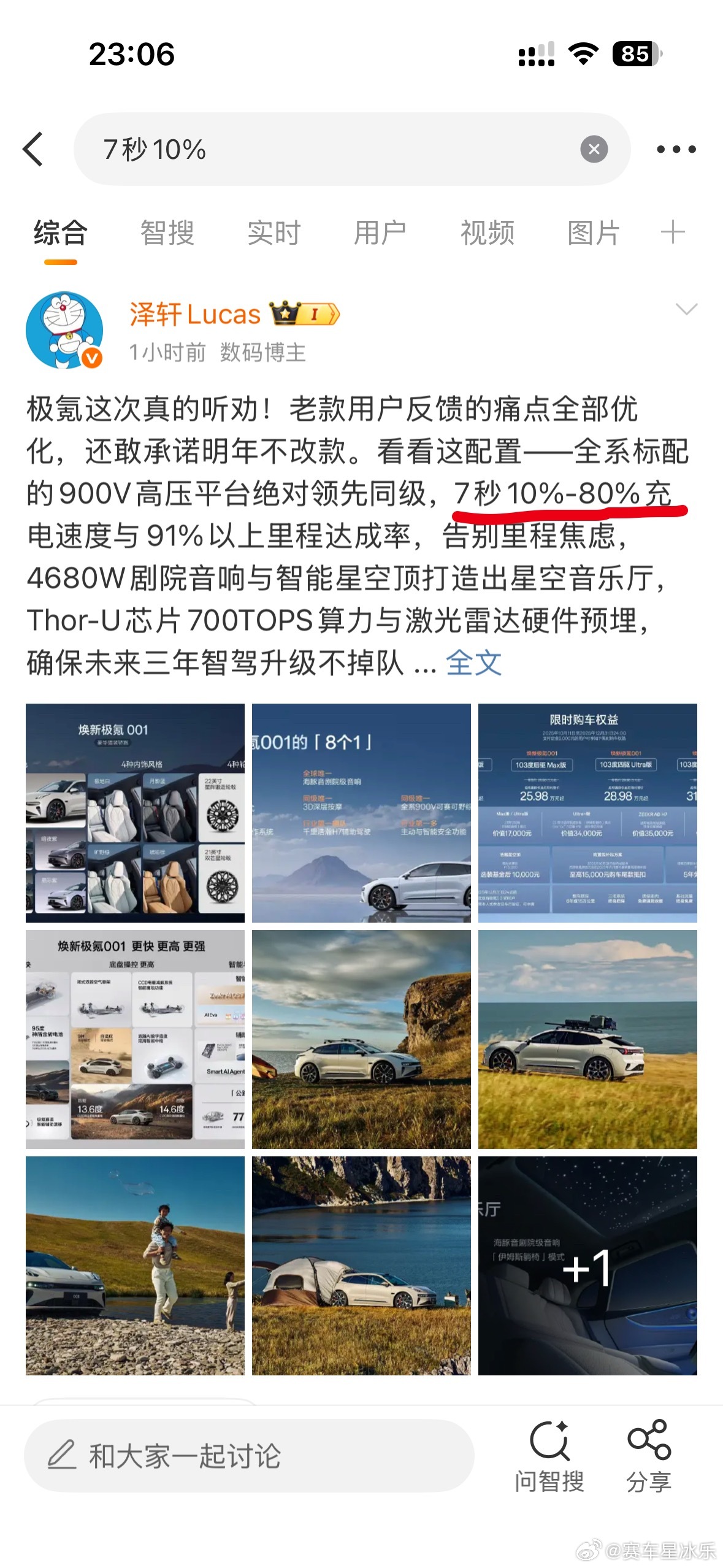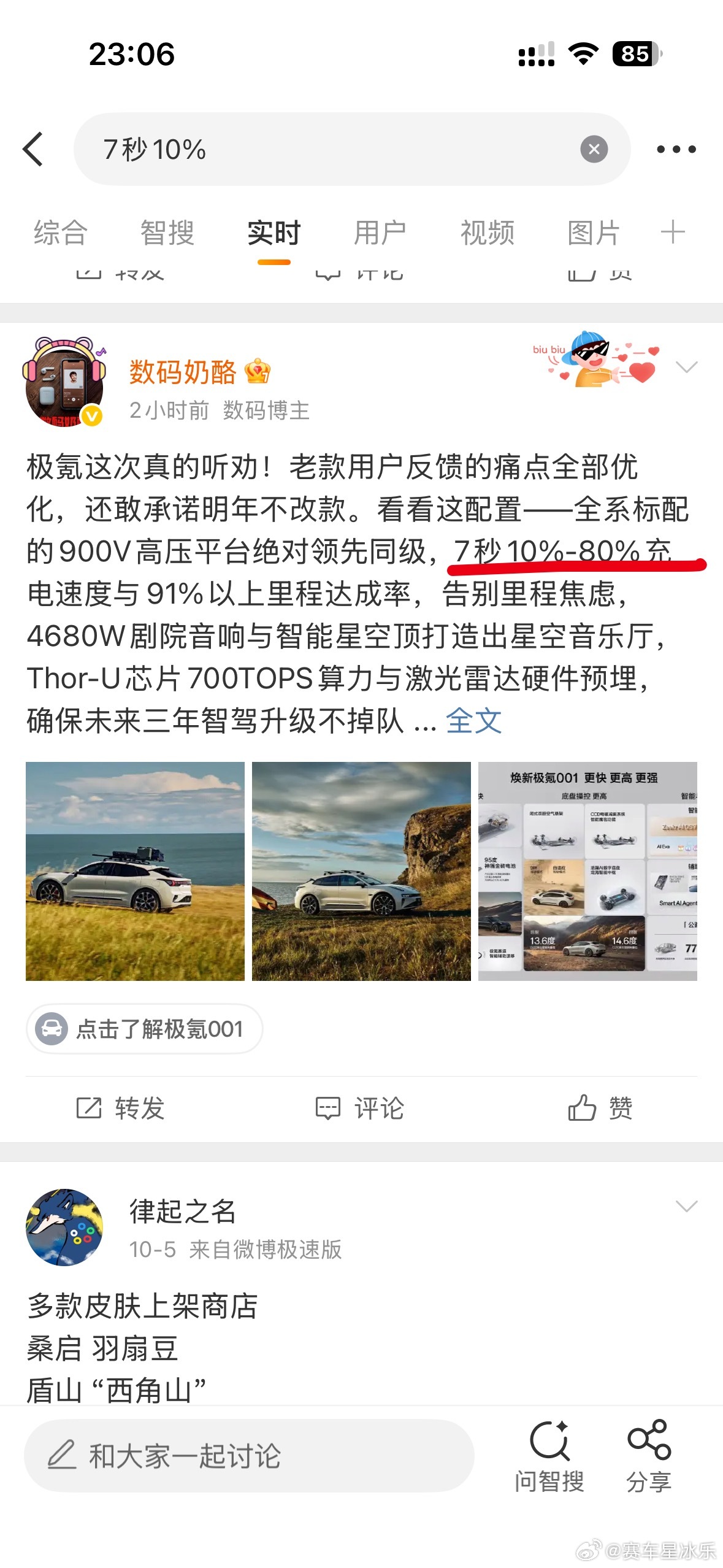 极氪001车7秒能从10%到80%[允悲][允悲][允悲],