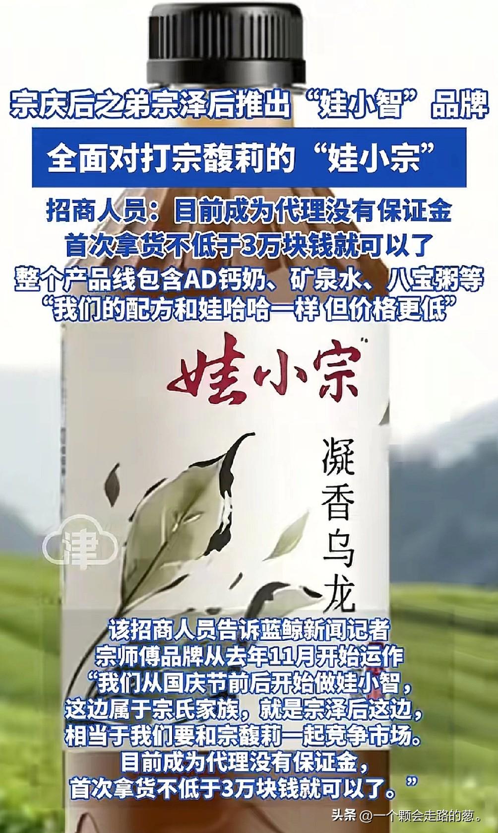 爱喝娃哈哈饮料的人有福了, 宗馥莉创立了自己的品牌“娃小宗”, 宗庆后弟弟现在对此也推出的自己的品牌,“娃小智”,这是要把哇哈哈家族扩大吗。 这样的商战的好处对爱喝饮料的人来说是好事,为了吸引顾客价格肯定会降,其中肯定还会有活动之类的。 同样的一家跟着降价,就会有其他家跟着降,你不降别人不买,你就没有市场,就看最后谁让利的多,谁的活动力度大! 就像之前的外卖大战一样,最后便宜的都是消费者,一样的产品肯定谁的质量好,价格低买谁的。 现在成为他们的代理比以前简单,就连他们生产的AD钙奶、矿泉水、八宝粥之类的产品和哇哈哈都是一样的配方,价格比娃哈哈低,感觉不像是在打商战,这是要把哇哈哈拉下水。