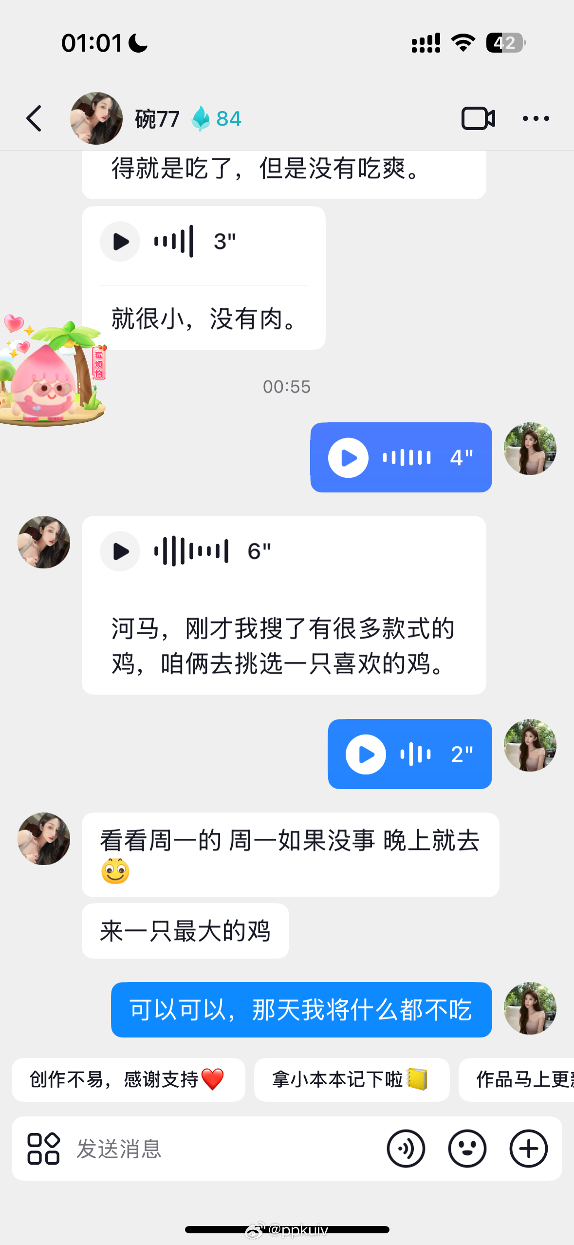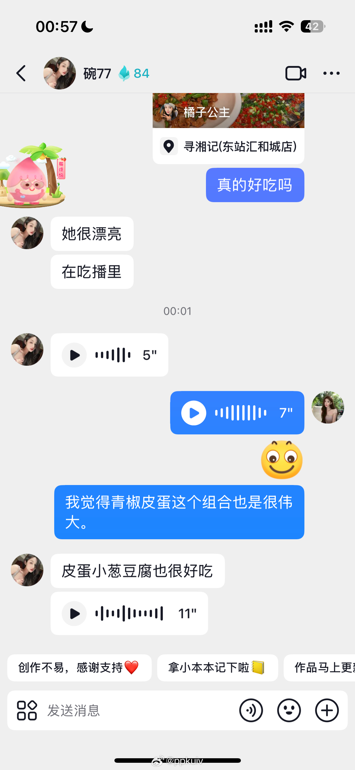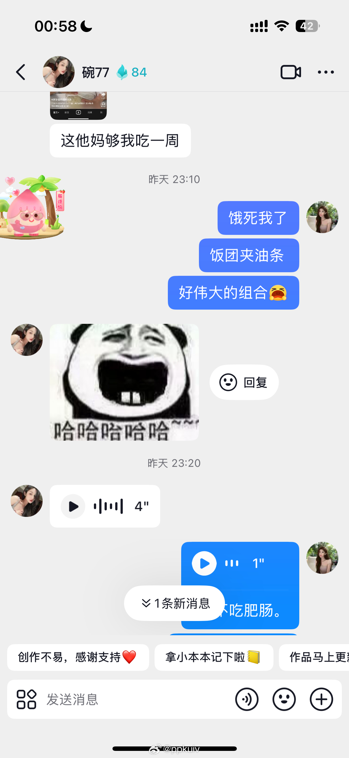 聊了两个小时的吃的 发狠了忘情了[微笑]