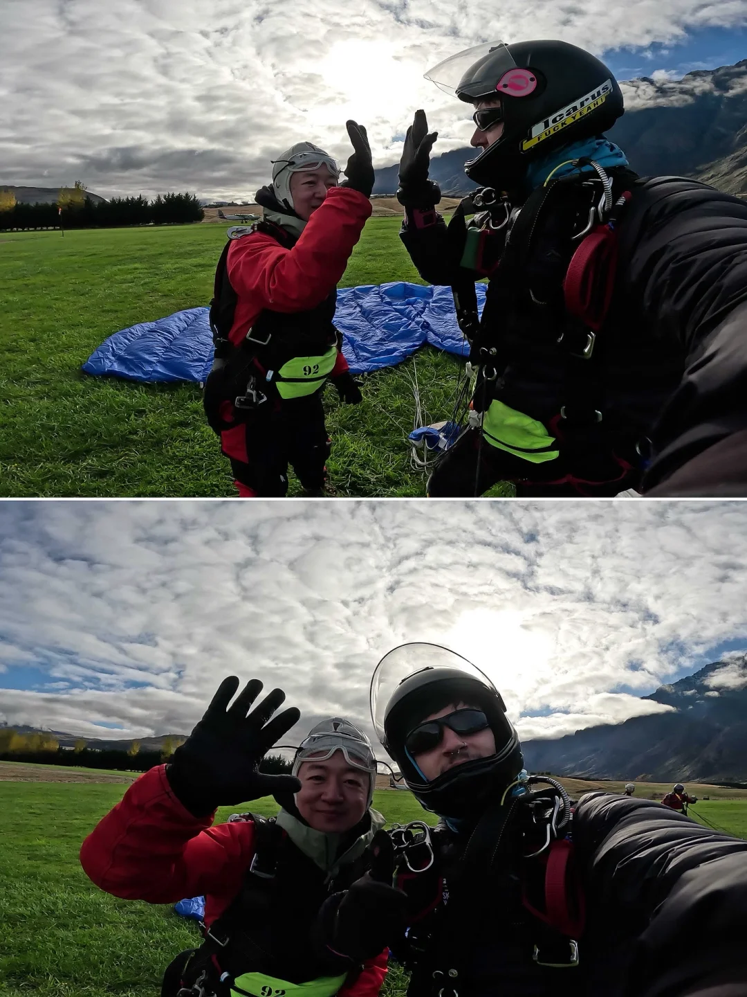新西兰运营跳伞的公司是NZONE Skydive,不仅在皇后镇在其他的城市也有基地!听说已经接待了35万的体验者,我跳伞的时候他们讲解,所有的降落伞都配了2个,安全性有保障!当然教练除了专业外,情绪价值给的满满的,很容易让你放松下来!