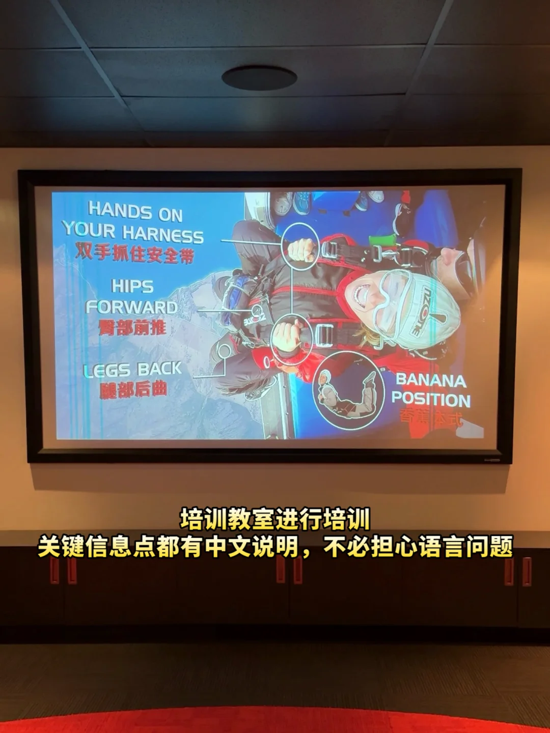 ❶出仓双手握住安全带,身体要保持香蕉状