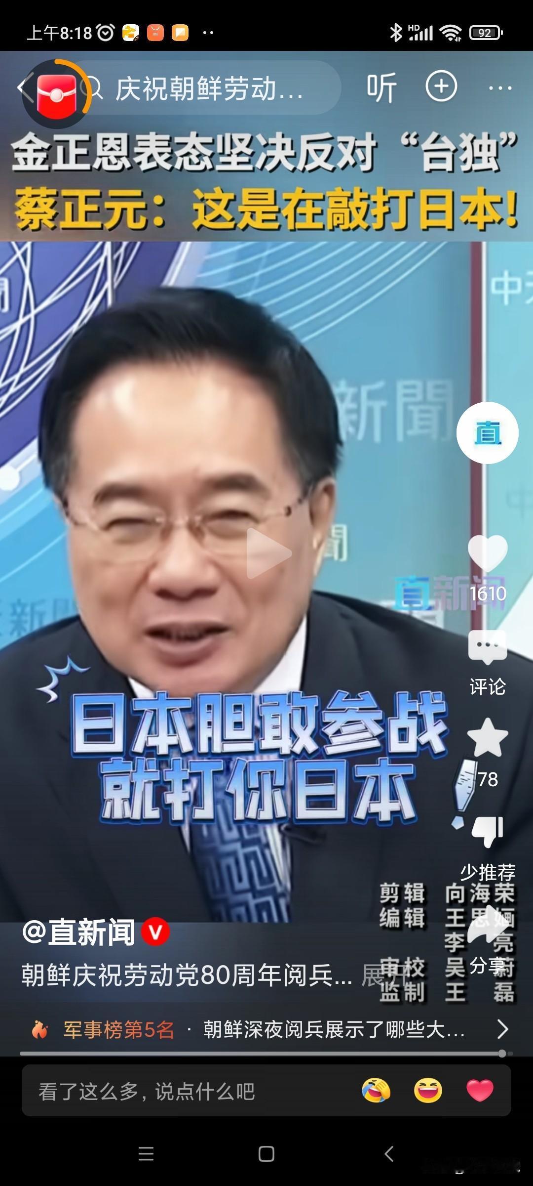 这才是朝鲜的价值!近日蔡正元教授谈到,朝鲜领导人金正恩说,朝鲜反对台独,这不是说