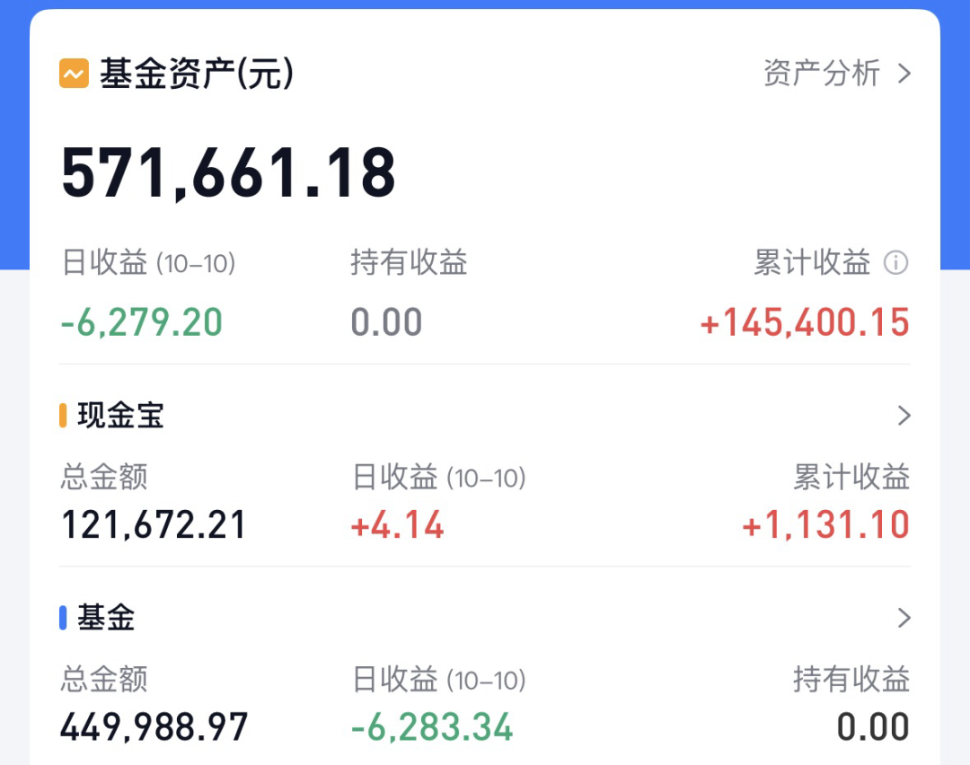 9月的最后一天,我赎回了2%的净值也就是1万元不到,让市值回归到我设定的44.5万元。