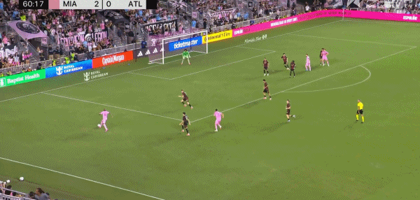 梅西夹缝中传球,苏亚雷斯和阿尔巴都没能很好地完成打门。可惜!再来!!!迈阿密国际