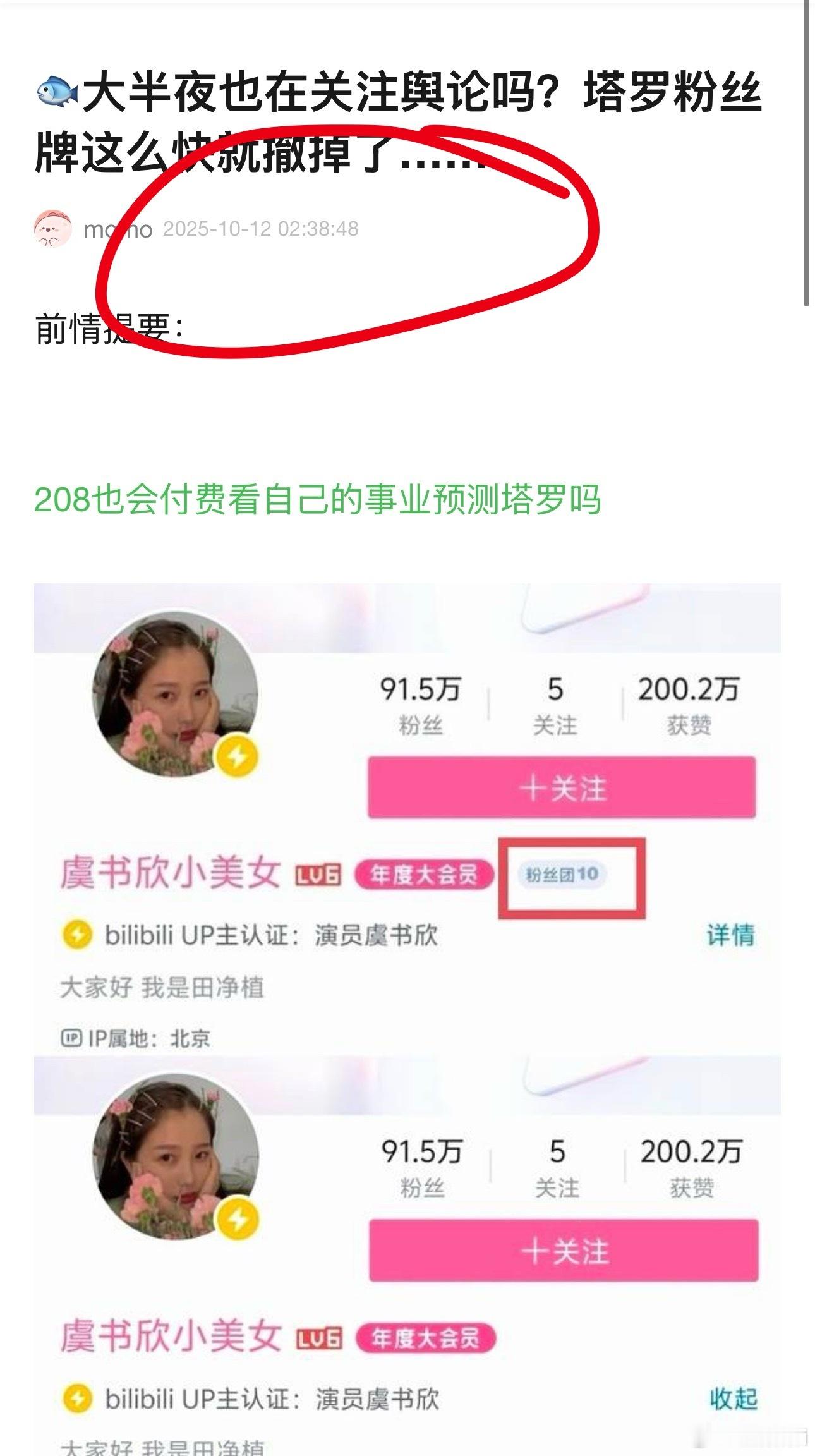 虞书欣看有塔罗牌预测自己的事业还是粉丝团十级,凌晨1点db发帖问明星也会看塔罗牌吗…凌晨三点灯牌被去掉了..[笑cry]
