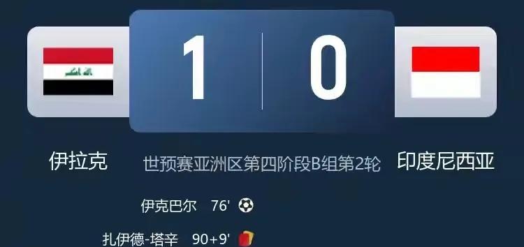 附加赛伊拉克1比0印尼,印尼队2连败,直接回家,印尼主帅直接被打哭了,印尼归化雇佣兵错失世界杯梦,赛后好多人都哭了,印尼足协主席托希尔世界杯梦碎,托希尔社媒向印尼球迷道歉。 马宁成了比赛的主角,全场比赛黄牌满天飞,马宁出了7黄1红,中国卡牌大师名不虚传,上半场双方0比0,伊拉克第76分钟,伊克巴尔禁区弧顶带球突破一记贴地斩世界波,皮球直钻网窝死角入网,伊拉克1-0印尼,印尼队反击未果,99分钟,马宁红牌罚下伊拉克塔辛,印尼队依然无力回天,印尼上场0比1输沙特,附加赛2连败,直接回老家。