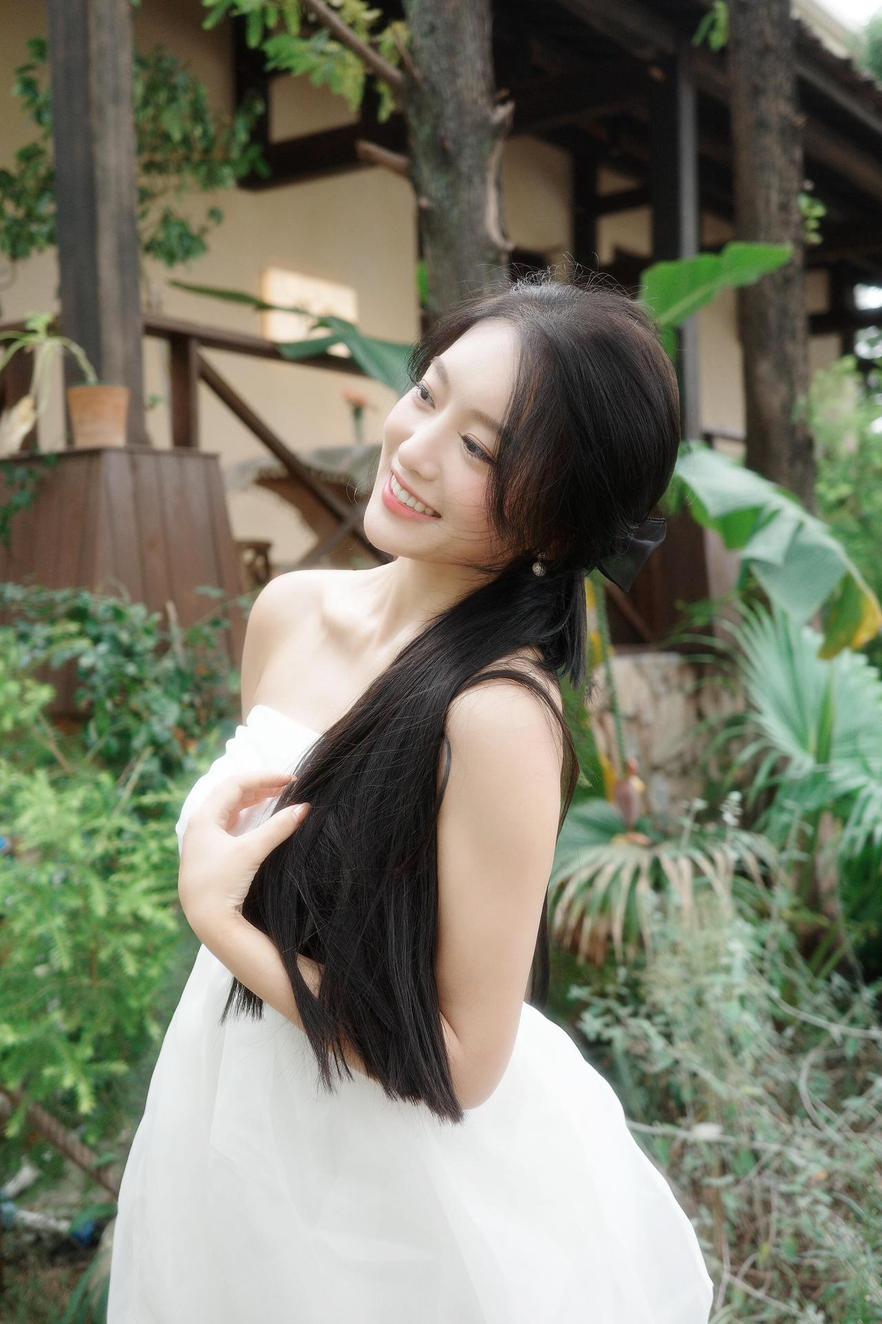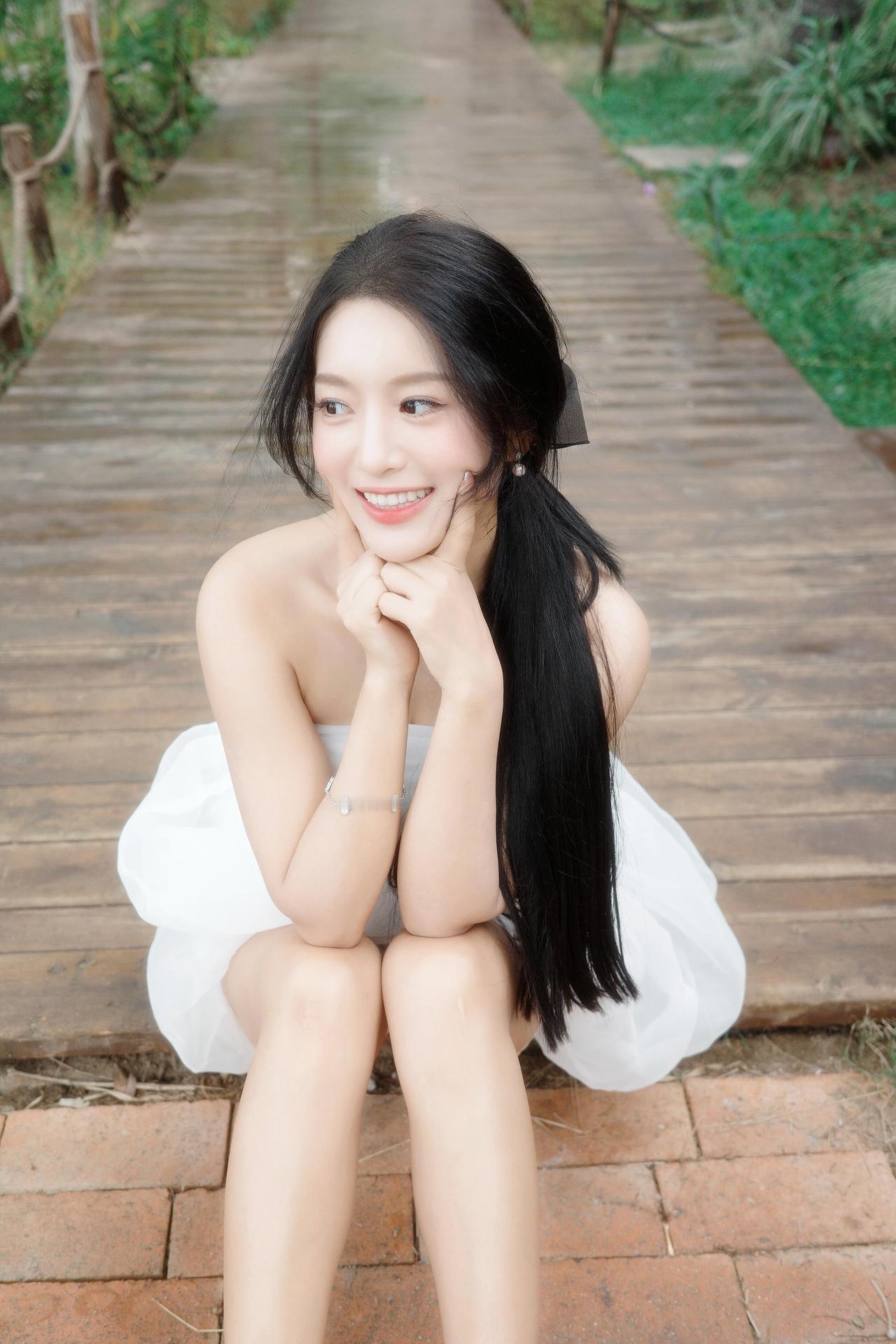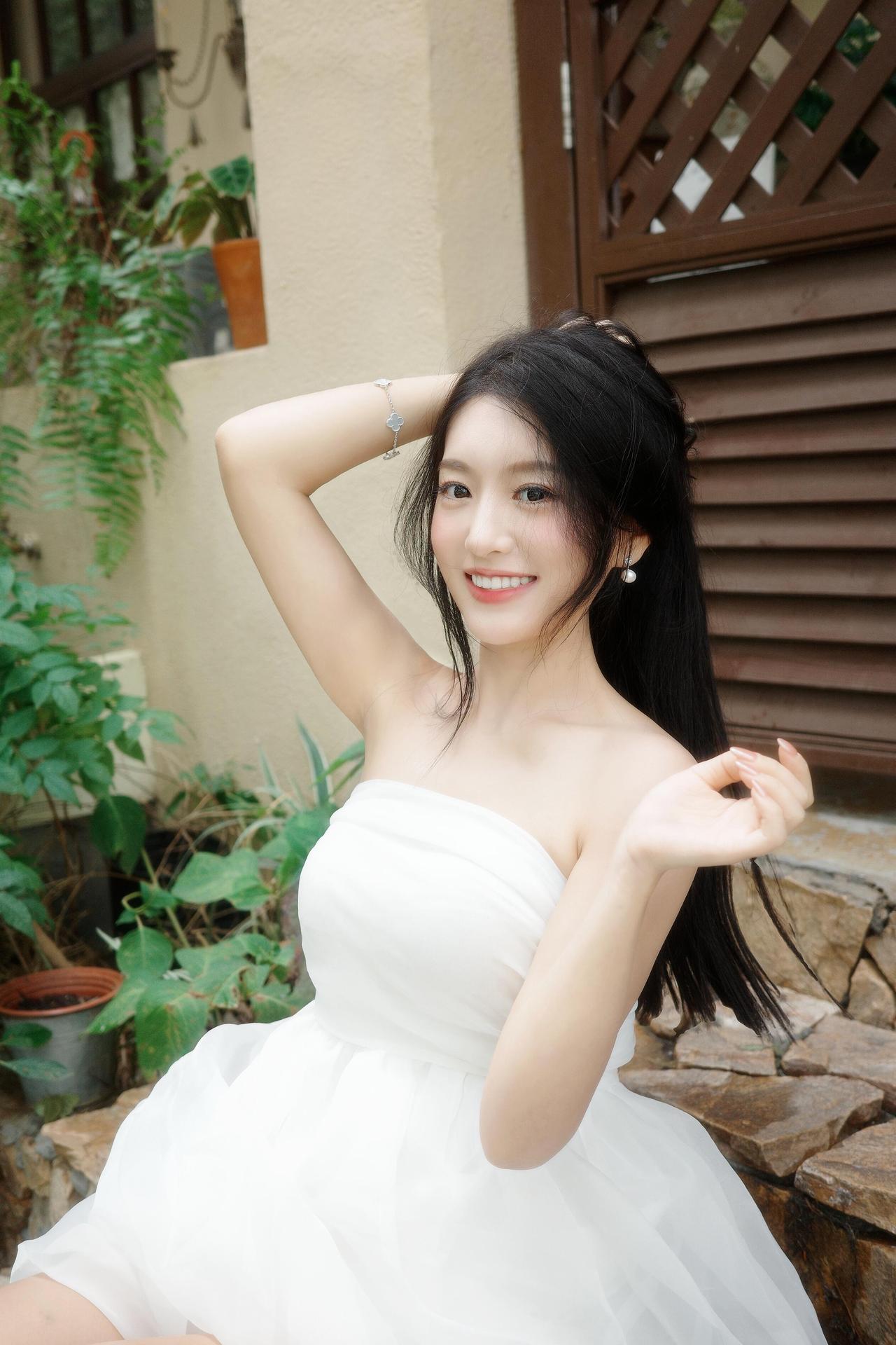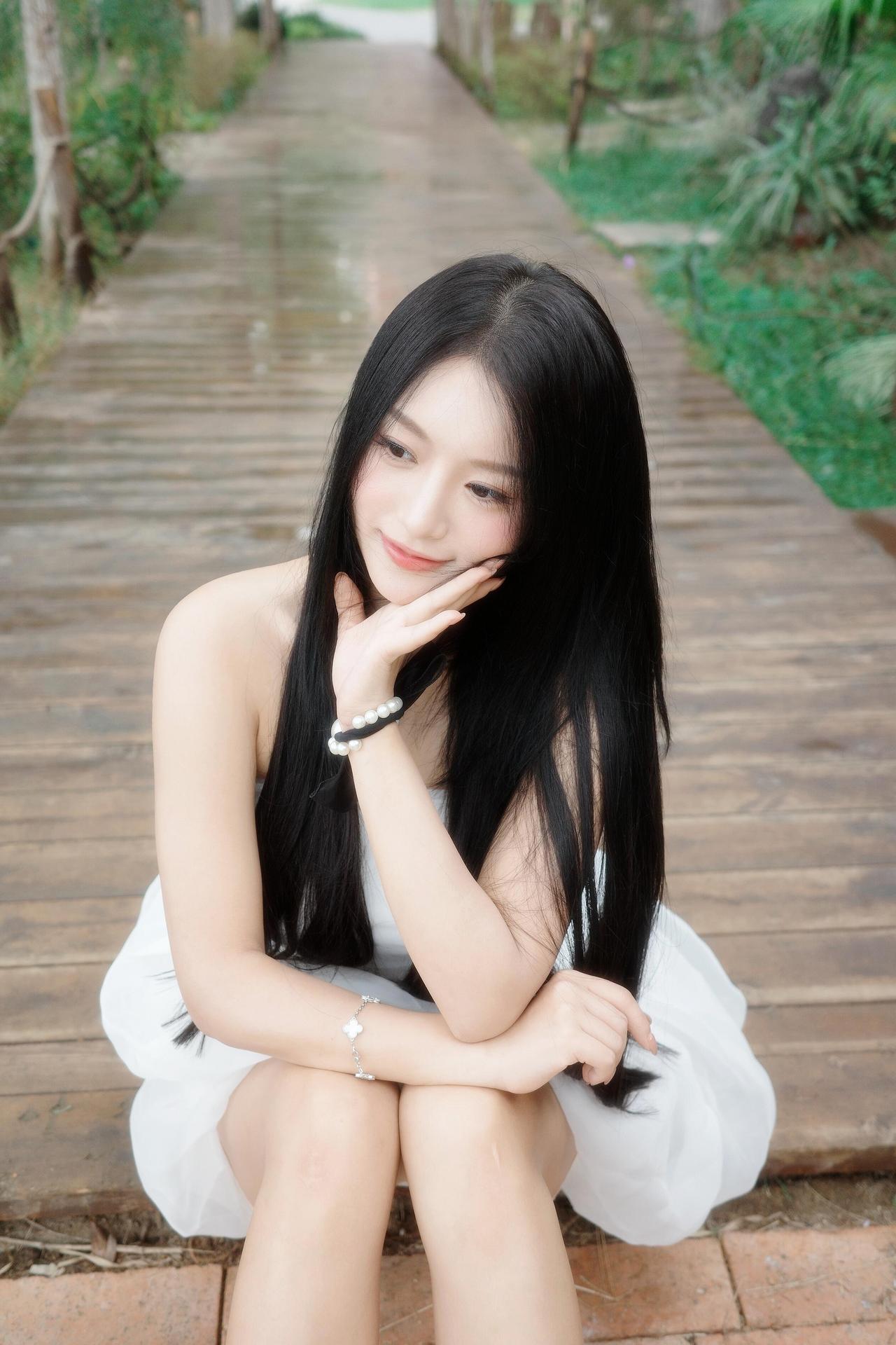 上联:秀发如瀑衬白裙,灵动可人 下联:笑靥似花融清景,温婉若诗 对联 对对联飞花令